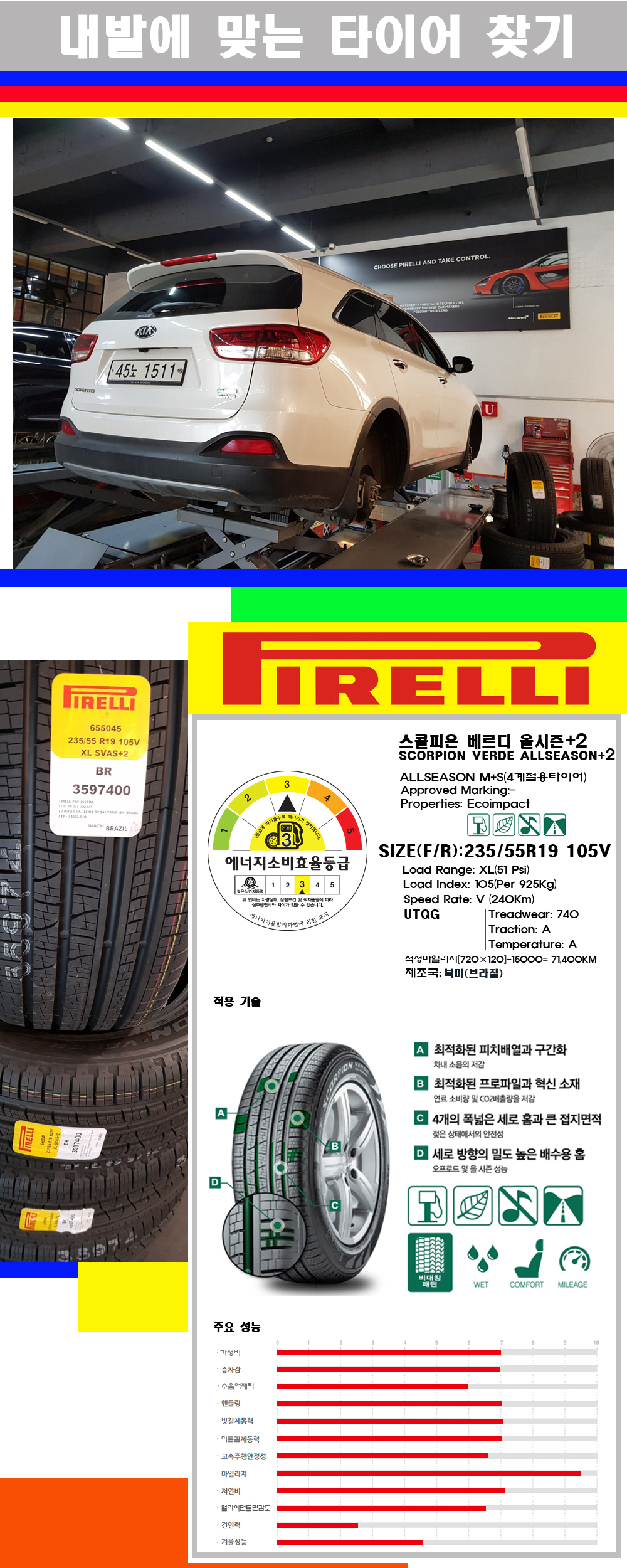 [2355519]쏘렌토/소렌토 피렐리타이어 스콜피온 베르디 올시즌플러스2 235/55R19 |