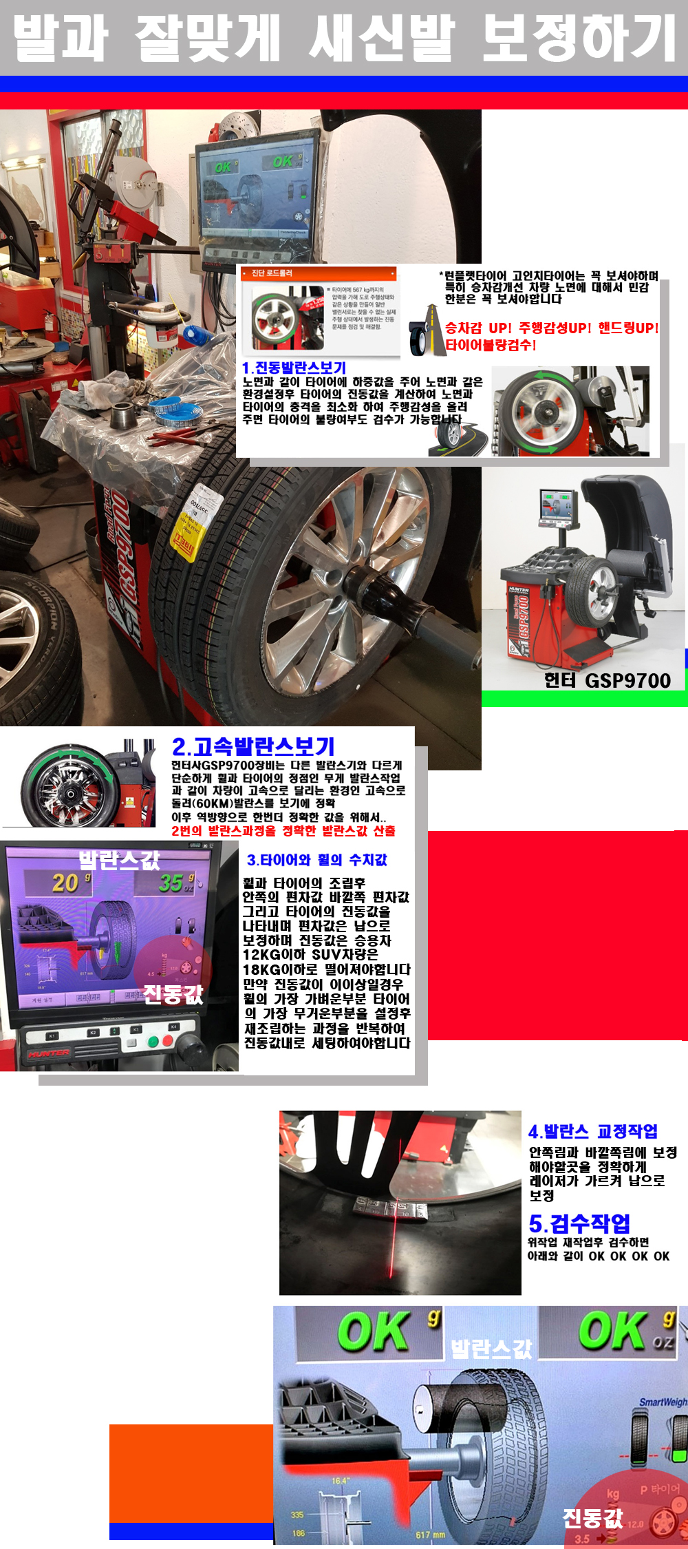 이장비는 노면에서 올라오는 진동값까지 계산하여 발란스값을 보는 방식으로 진동발란스기는 헌터사GSP9700장비가 유일합니다 이후 역방향으로 60키로의 고속으로 다시 발란스값을 보정하는 방식입니다