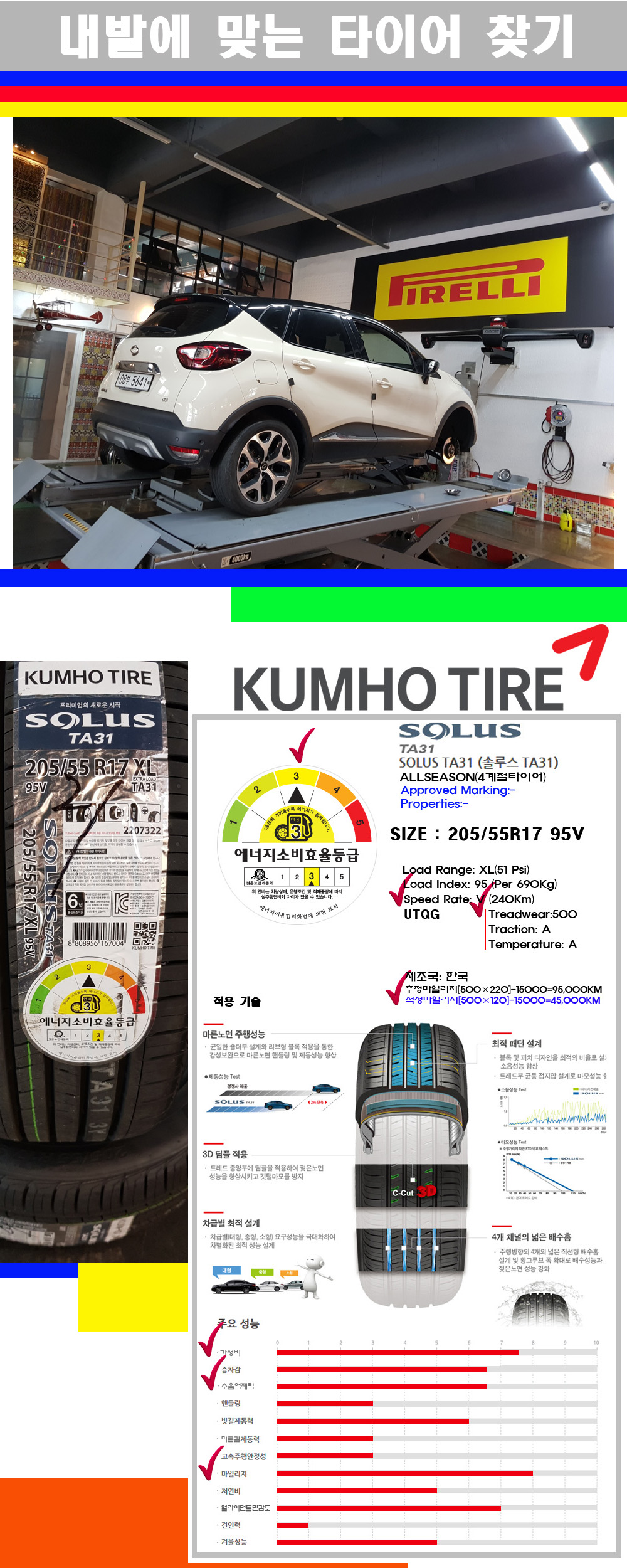 [2055517]QM3 금호타이어 솔루스 TA31 205/55R17 |