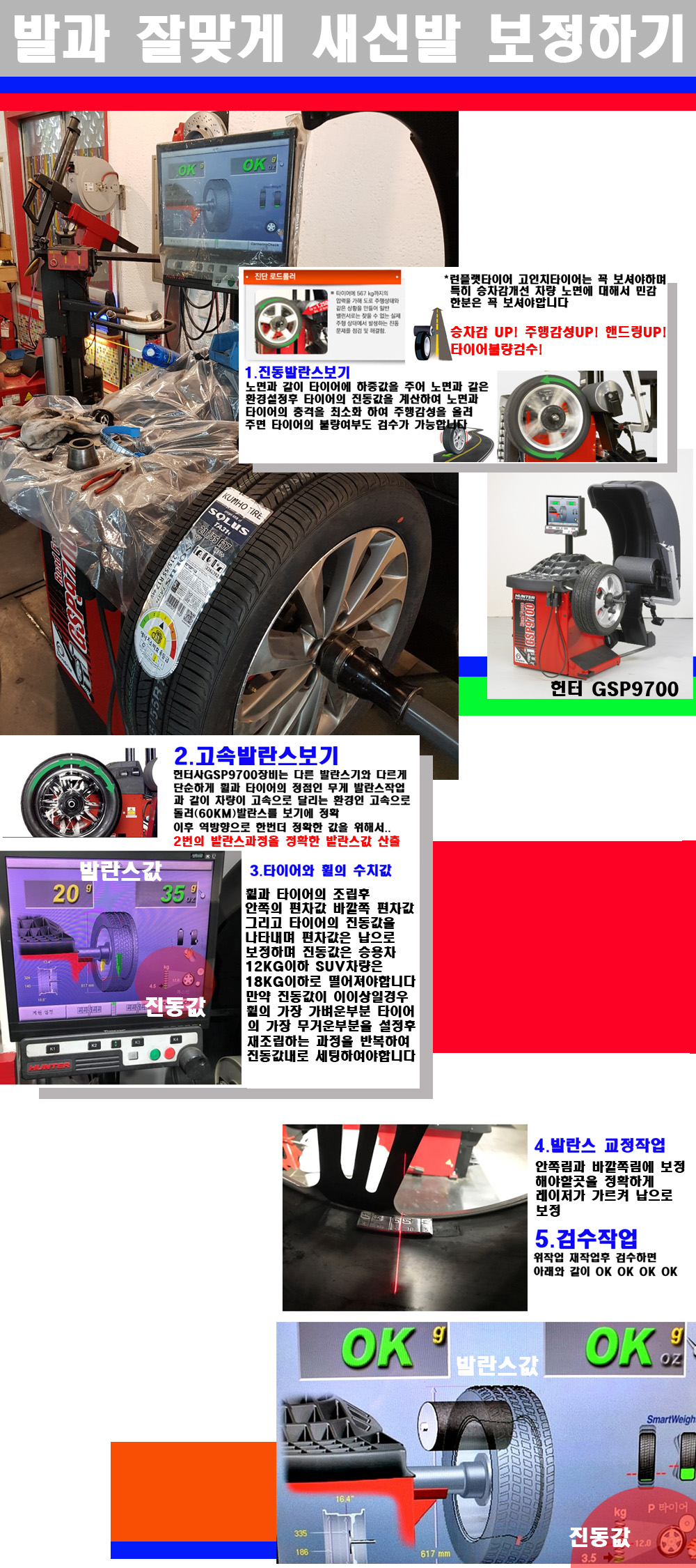 이장비는 노면에서 올라오는 진동값까지 계산하여 발란스값을 보는 방식으로 진동발란스기는 헌터사GSP9700장비가 유일합니다 이후 역방향으로 60키로의 고속으로 다시 발란스값을 보정하는 방식입니다
