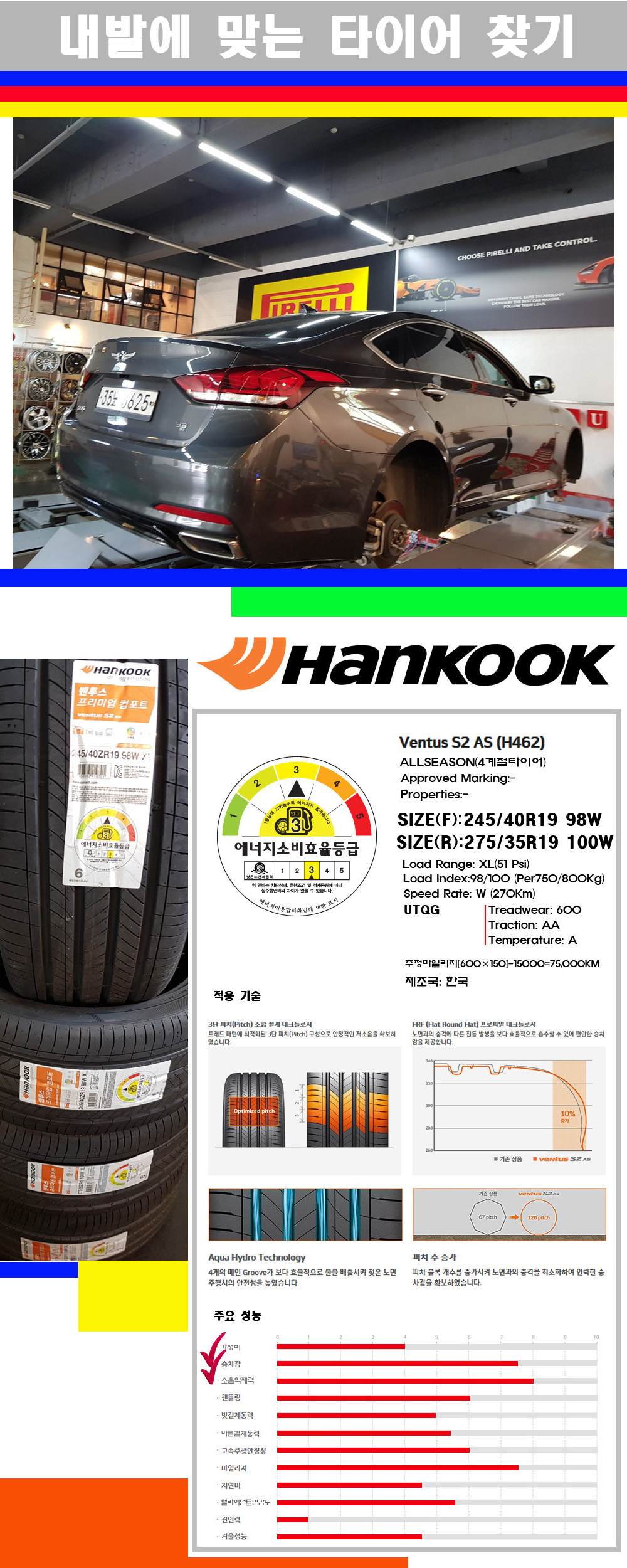 [2454019][2753519]제네시스G80 한국타이어 벤투스 S2AS (H462) 전)245/40R19 후)275/35R19 |