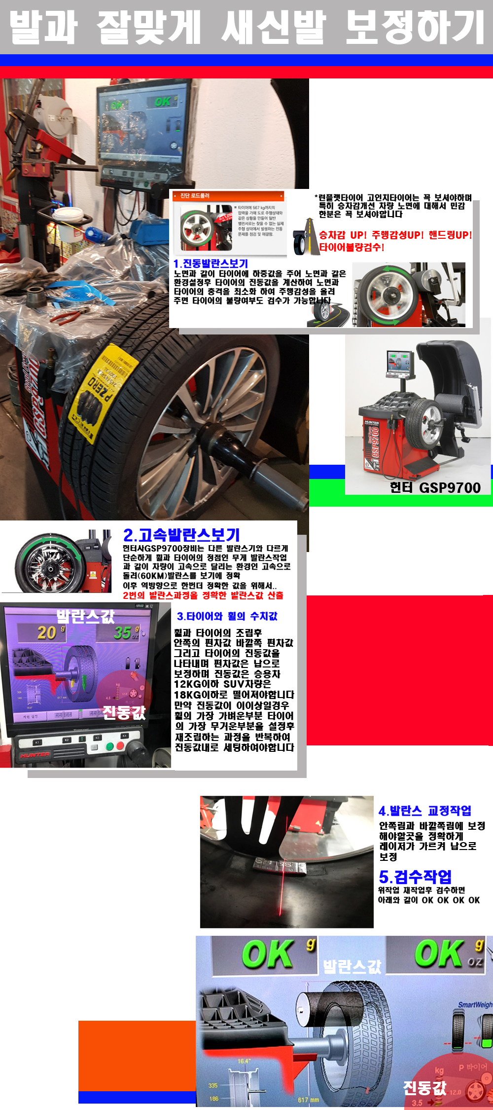 이장비는 노면에서 올라오는 진동값까지 계산하여 발란스값을 보는 방식으로 진동발란스기는 헌터사GSP9700장비가 유일합니다 이후 역방향으로 60키로의 고속으로 다시 발란스값을 보정하는 방식입니다