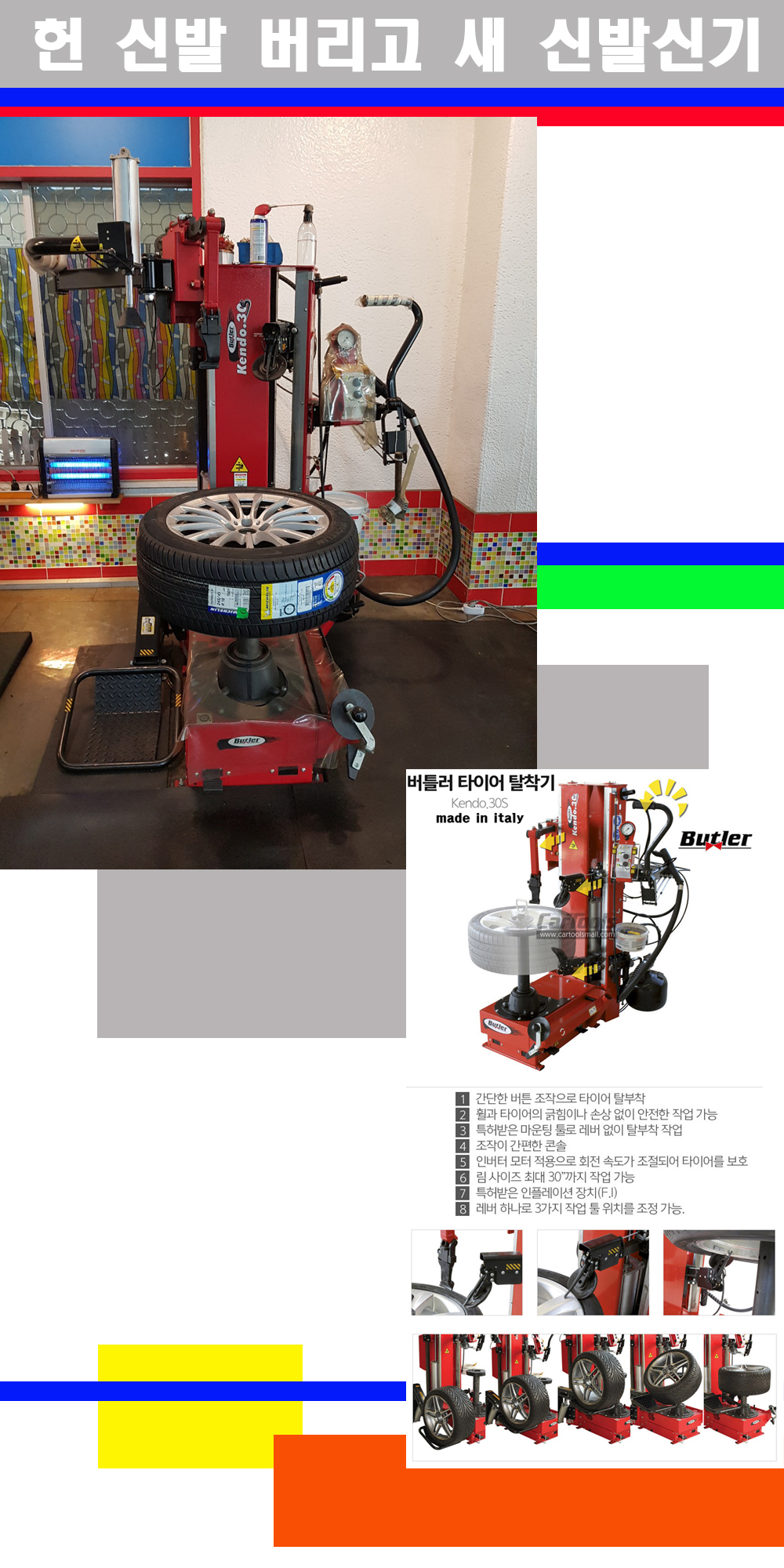 이태리 버틀러사의 켄도3.0S는 휠과 타이어와 조립과 분리시 전혀 제품에 손상을 주지않는 탈착기로 특히 센터락방식이여서 휠의 중앙부위 잡아서 타이어를 탈부착하고 이후 상하롤러로 타이어를 탈부착합니다 특히 유니포미티작업(휠의 가장가벼운부분과 타이어의 가장 무거운부분을 매칭시키는 작업)시 작업자가 타이어를 정확한 지점에 휠과 매칭시킬수 있는 장점도 있습니다
