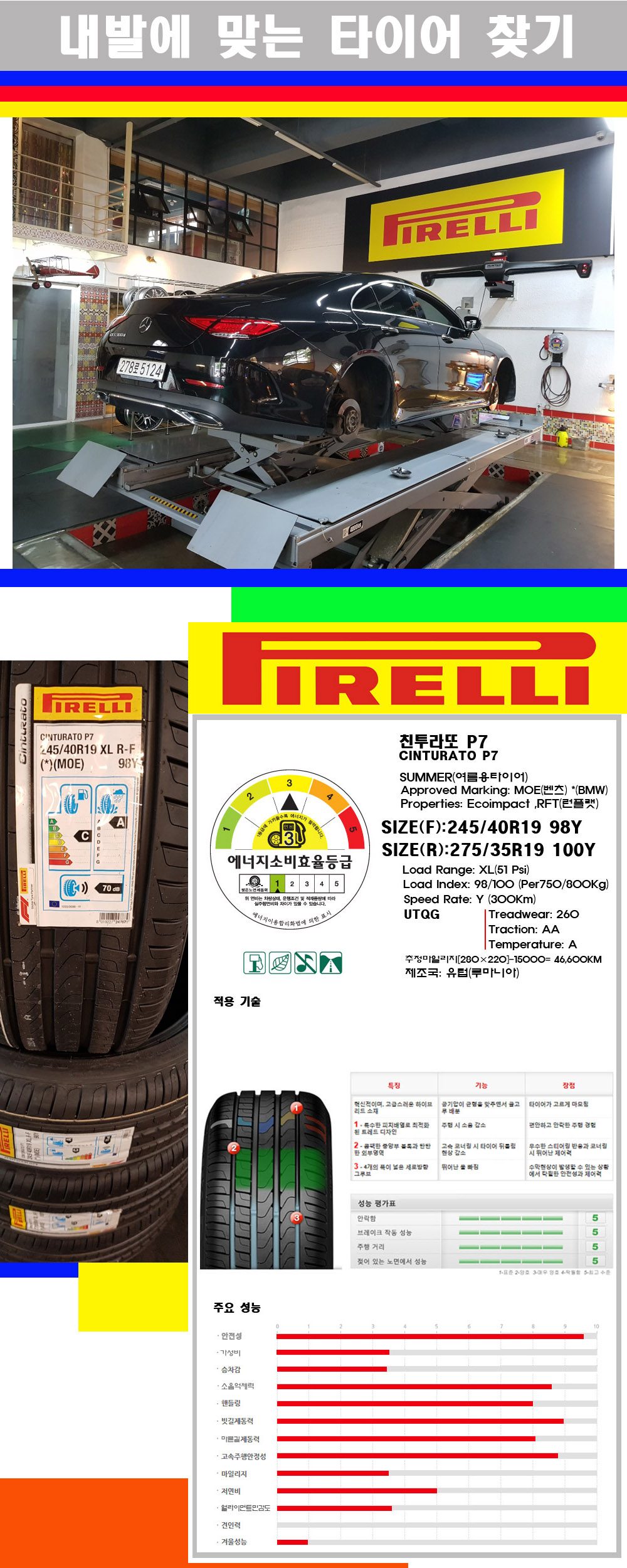 [2454019][2753519]벤츠CLS300D 피렐리타이어 친투라또 P7 런플랫 F)245/40R19 R)275/35R19 |