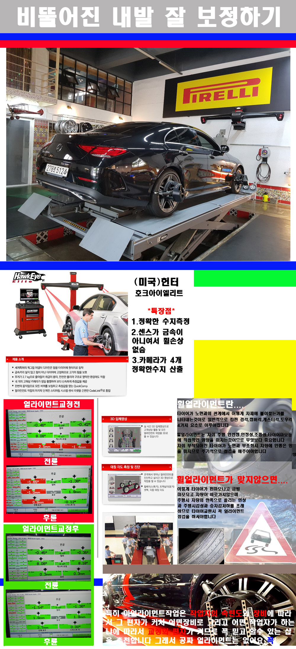 이후 미국 헌터사 호크아이엘리트 장비로 3D얼라이먼트를 진행했습니다