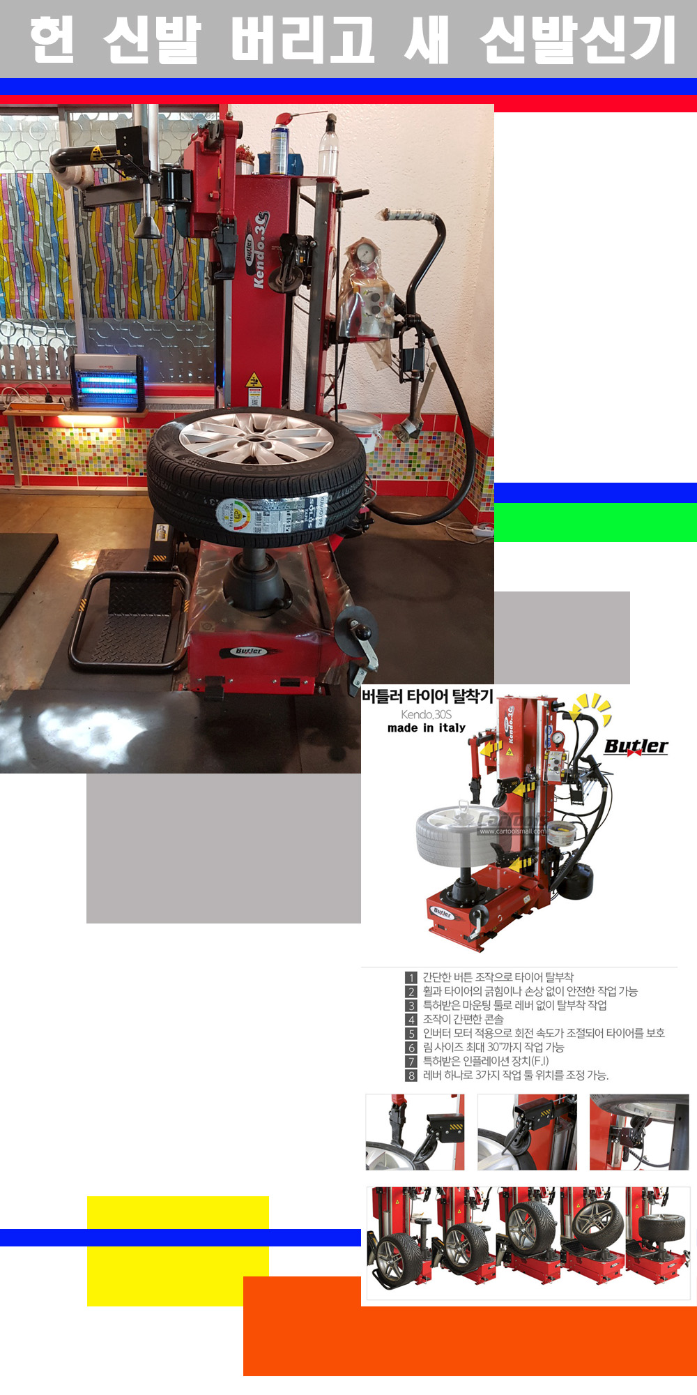 이태리 버틀러사의 켄도3.0S는 휠과 타이어와 조립과 분리시 전혀 제품에 손상을 주지않는 탈착기로 특히 센터락방식이여서 휠의 중앙부위 잡아서 타이어를 탈부착하고 이후 상하롤러로 타이어를 탈부착합니다 특히 유니포미티작업(휠의 가장가벼운부분과 타이어의 가장 무거운부분을 매칭시키는 작업)시 작업자가 타이어를 정확한 지점에 휠과 매칭시킬수 있는 장점도 있습니다