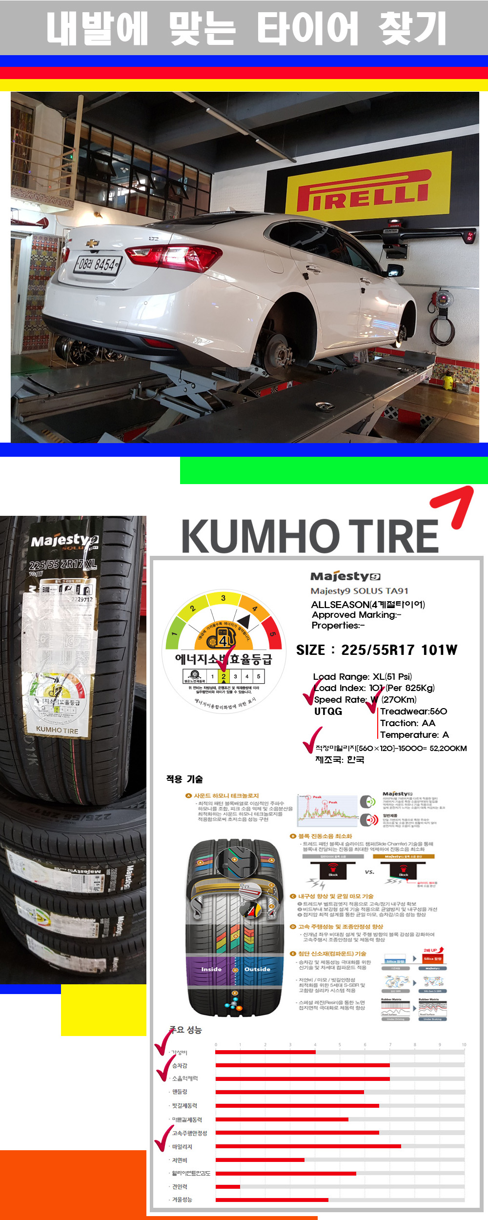 [2255517]말리부 금호타이어 솔루스 TA91 (마제스티9) 225/55R17 |