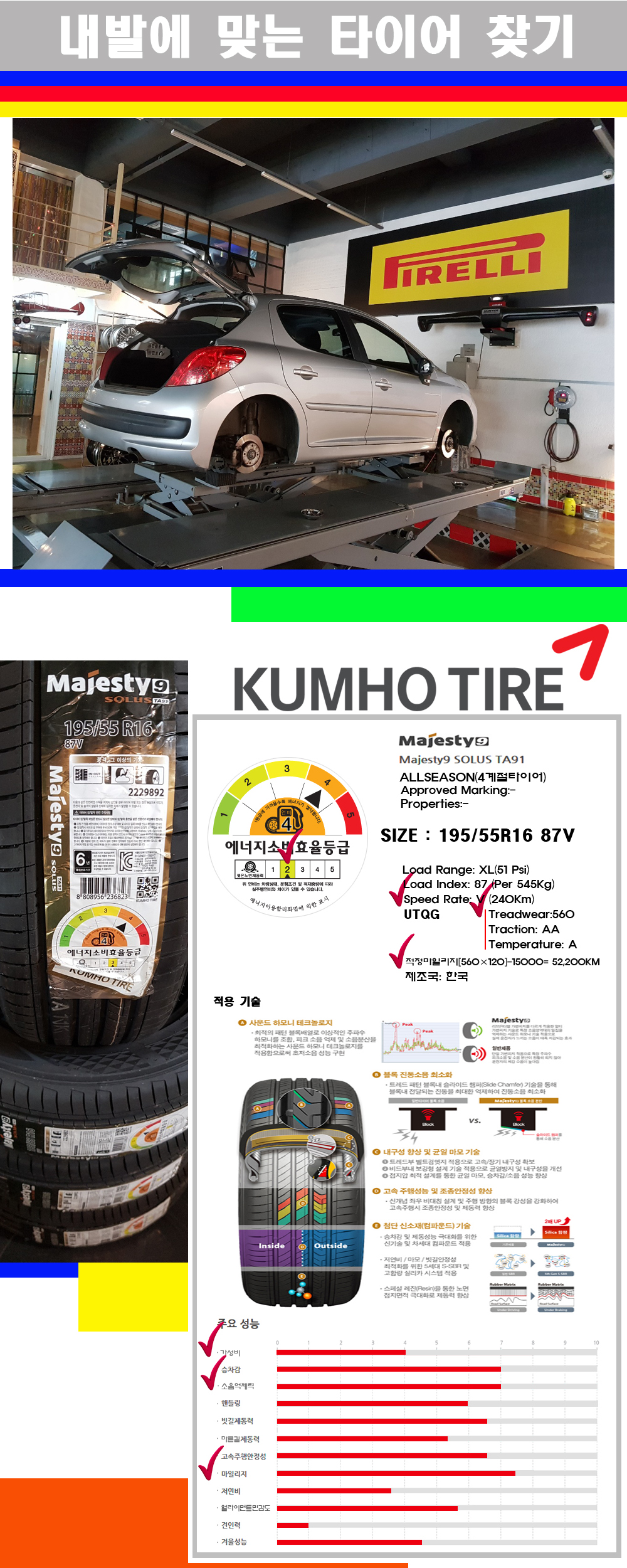 [1955516]푸조207 금호타이어 솔루스 마제스티9 (TA91) 195/55R16 |