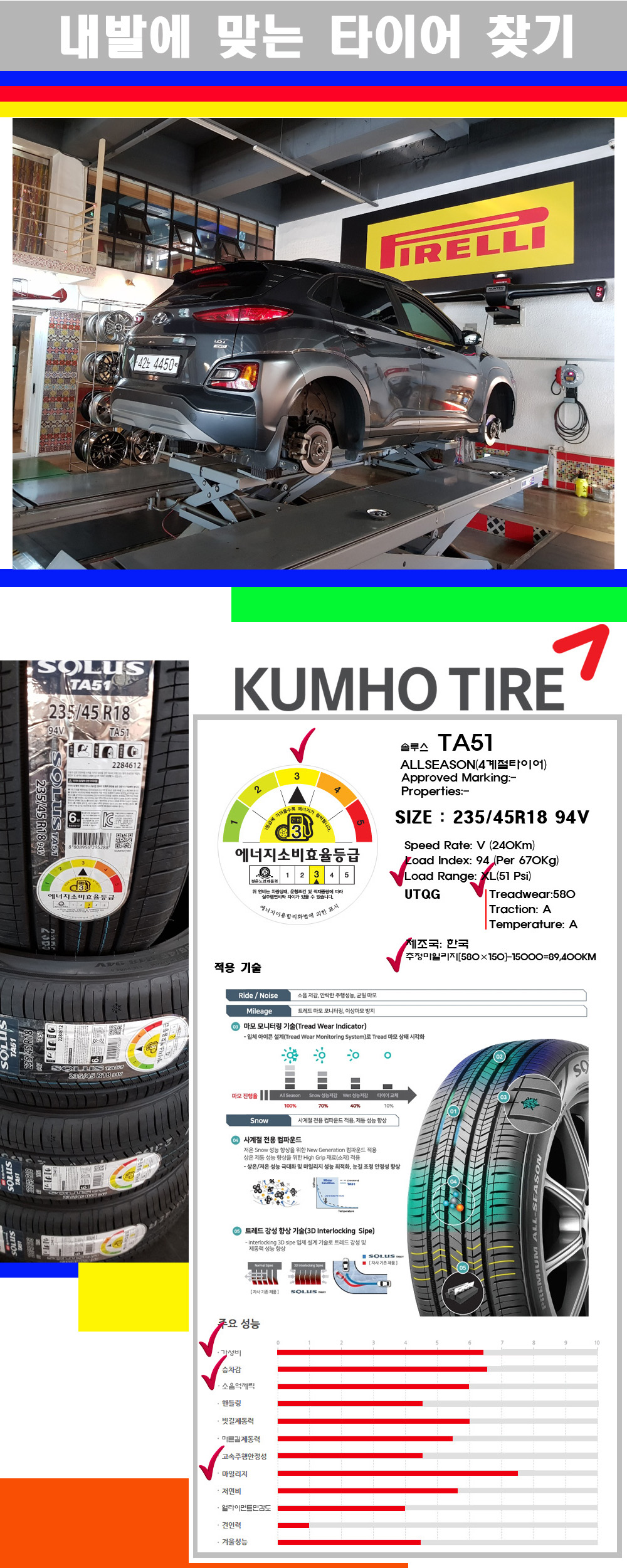[2354518]코나 금호타이어 솔루스 TA51 235/45R18 |