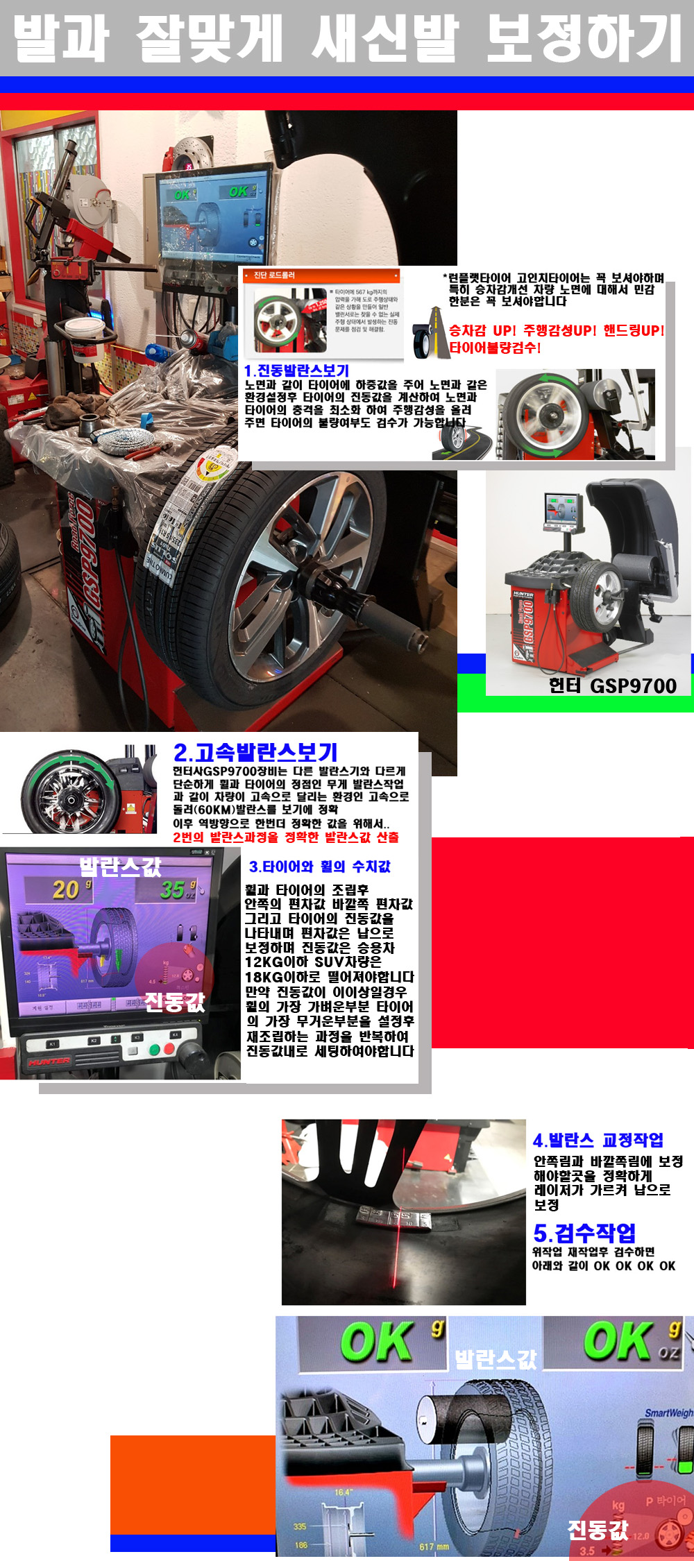 이장비는 노면에서 올라오는 진동값까지 계산하여 발란스값을 보는 방식으로 진동발란스기는 헌터사GSP9700장비가 유일합니다 이후 역방향으로 60키로의 고속으로 다시 발란스값을 보정하는 방식입니다