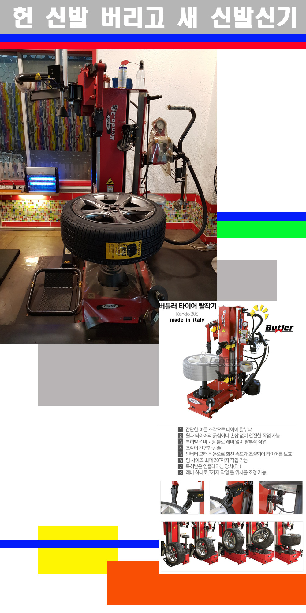 이태리 버틀러사의 켄도3.0S는 휠과 타이어와 조립과 분리시 전혀 제품에 손상을 주지않는 탈착기로 특히 센터락방식이여서 휠의 중앙부위 잡아서 타이어를 탈부착하고 이후 상하롤러로 타이어를 탈부착합니다 특히 유니포미티작업(휠의 가장가벼운부분과 타이어의 가장 무거운부분을 매칭시키는 작업)시 작업자가 타이어를 정확한 지점에 휠과 매칭시킬수 있는 장점도 있습니다