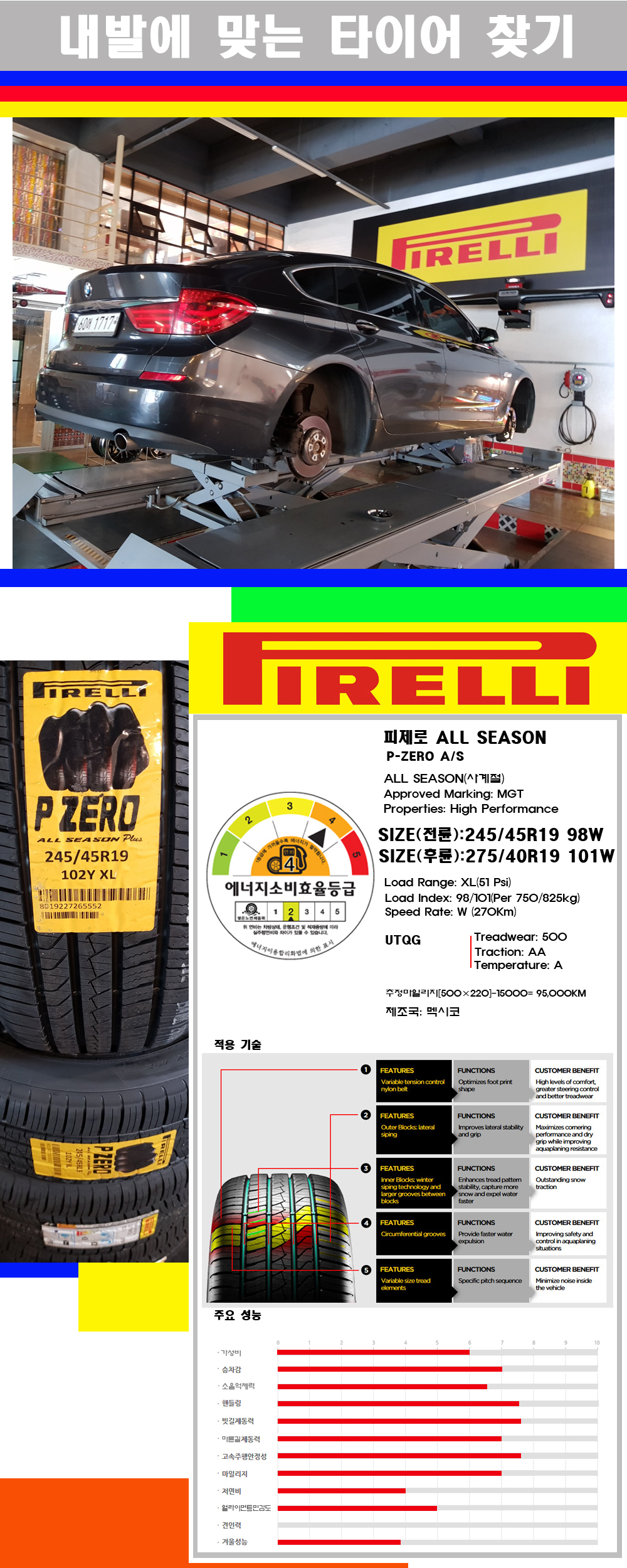 [2454519][2754019]BMW5GT 피렐리타이어 피제로올시즌플러스 F) 245/45R19 R) 275/40R19 |