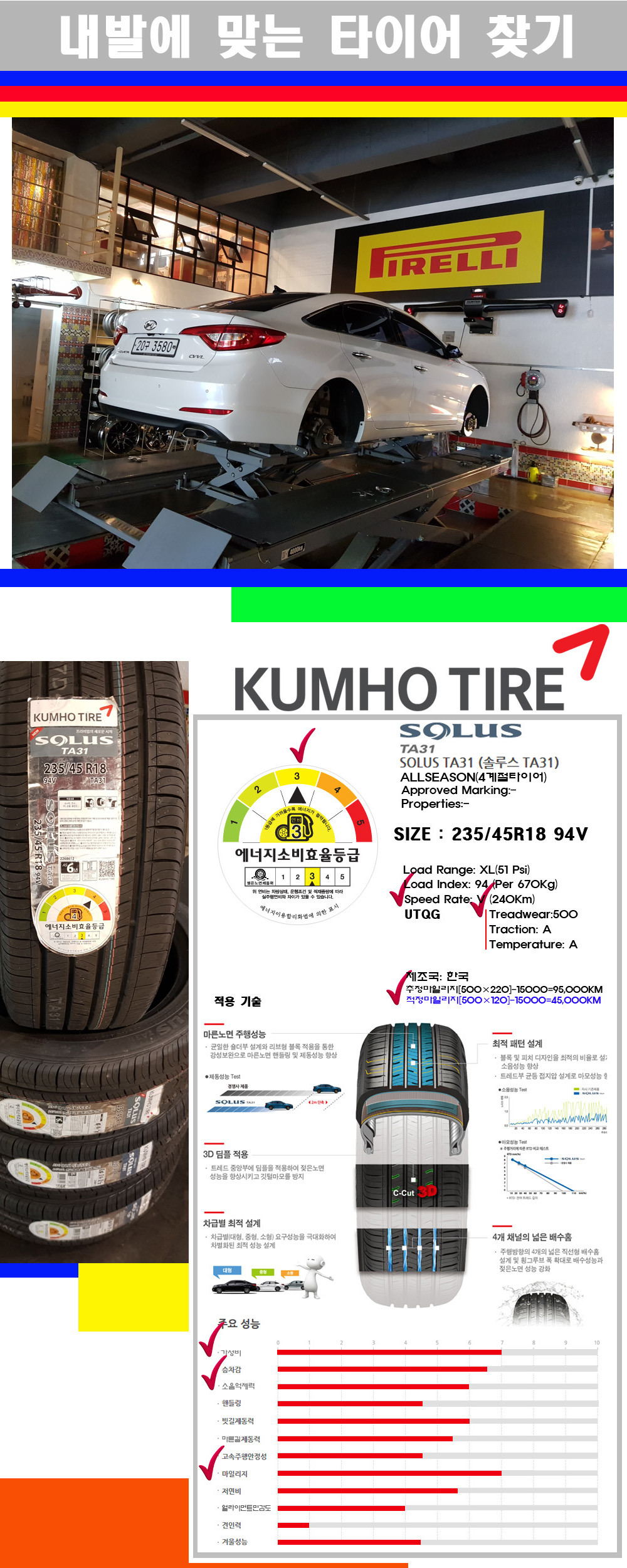 [2354518]LF소나타 금호타이어 솔루스 TA31 235/45R18 |