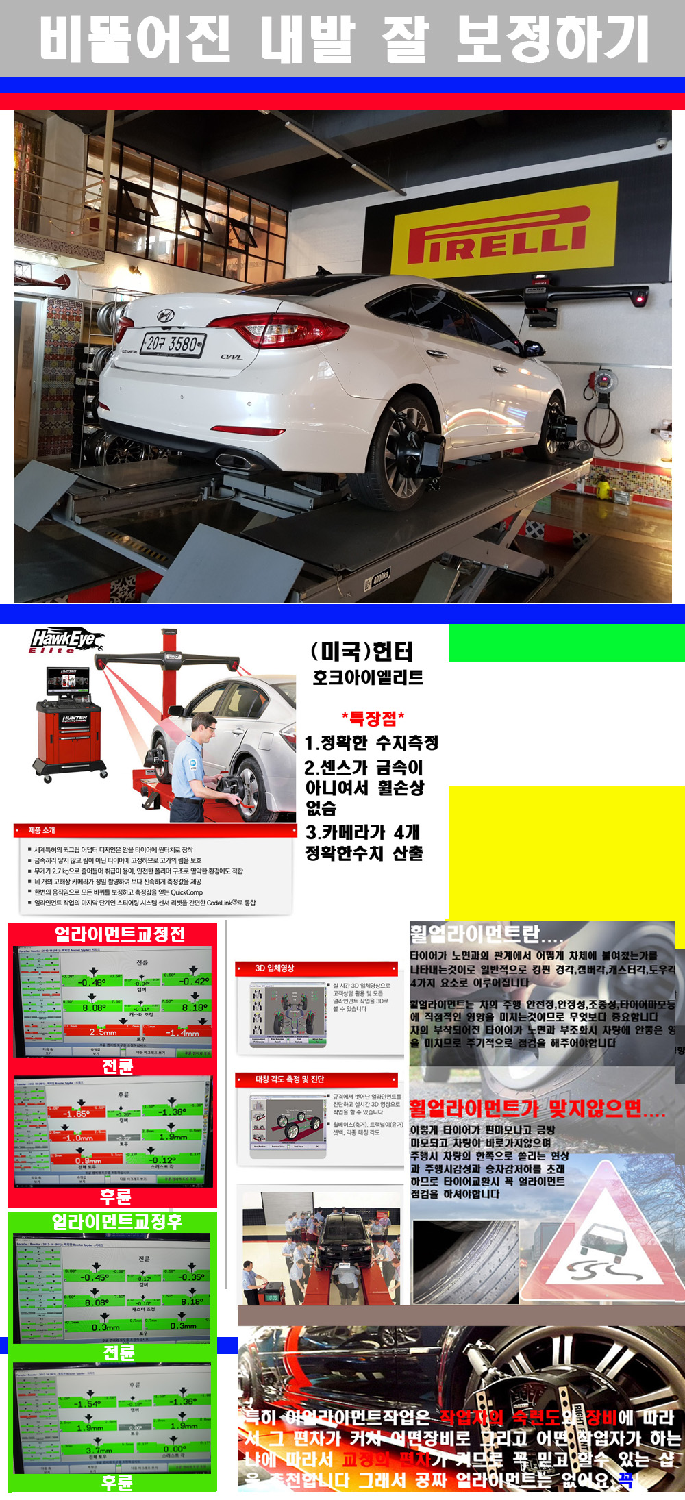 이후 미국 헌터사 호크아이엘리트 장비로 3D얼라이먼트를 진행했습니다