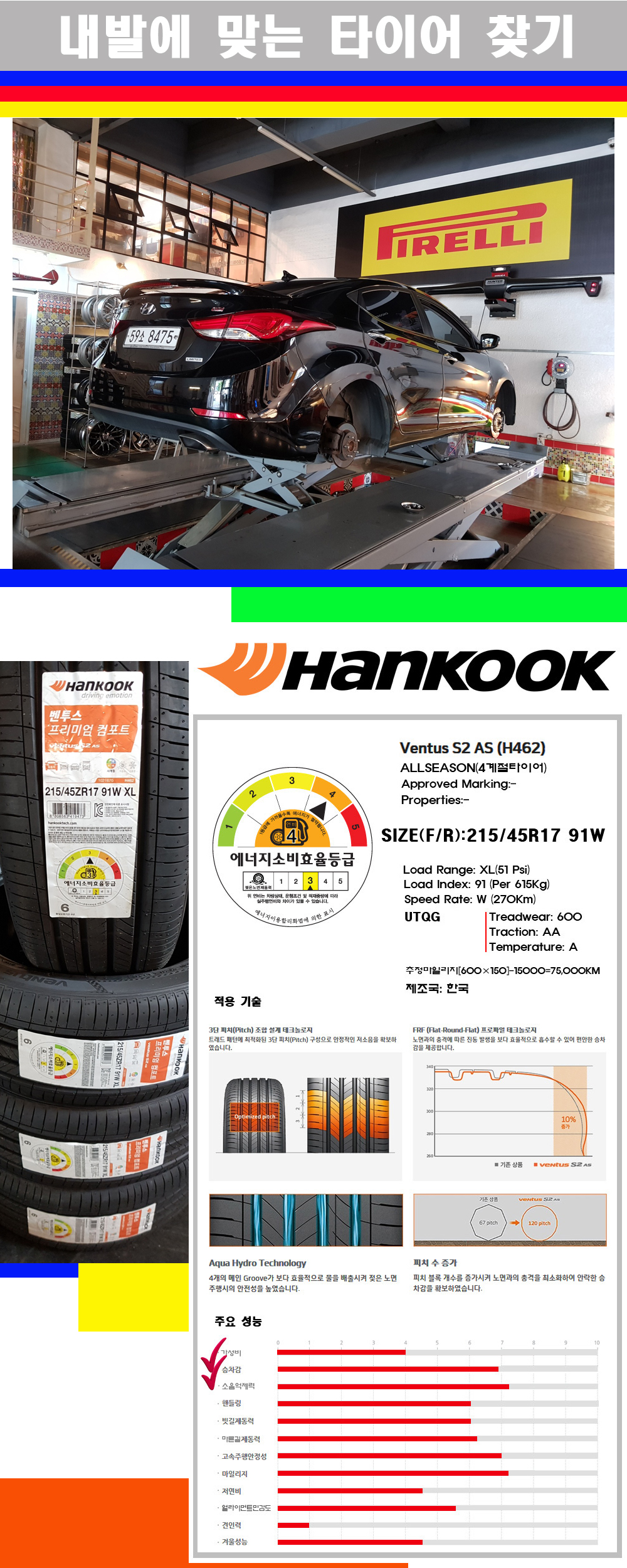 [2154517]아반테AD 한국타이어 벤투스 S2AS(H462) 215/45R17 |