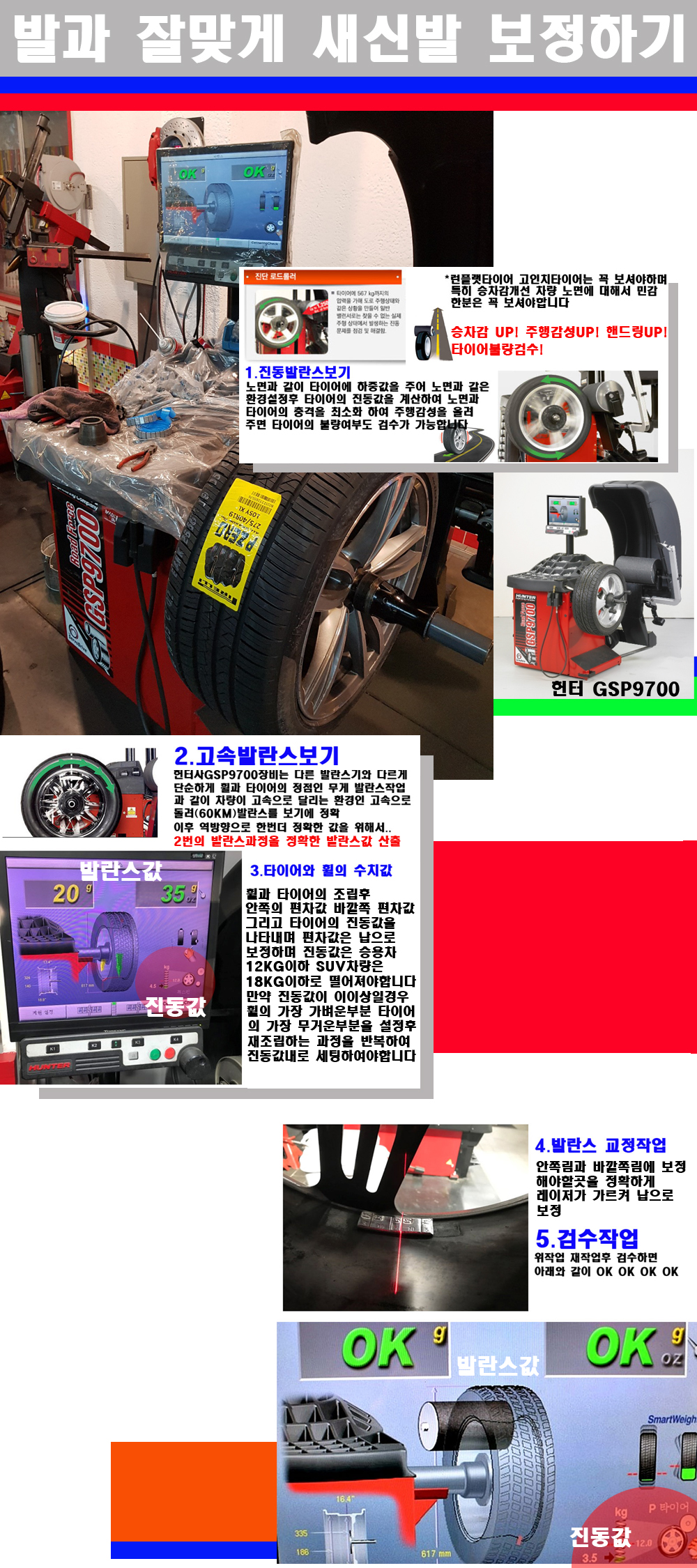 이장비는 노면에서 올라오는 진동값까지 계산하여 발란스값을 보는 방식으로 진동발란스기는 헌터사GSP9700장비가 유일합니다 이후 역방향으로 60키로의 고속으로 다시 발란스값을 보정하는 방식입니다