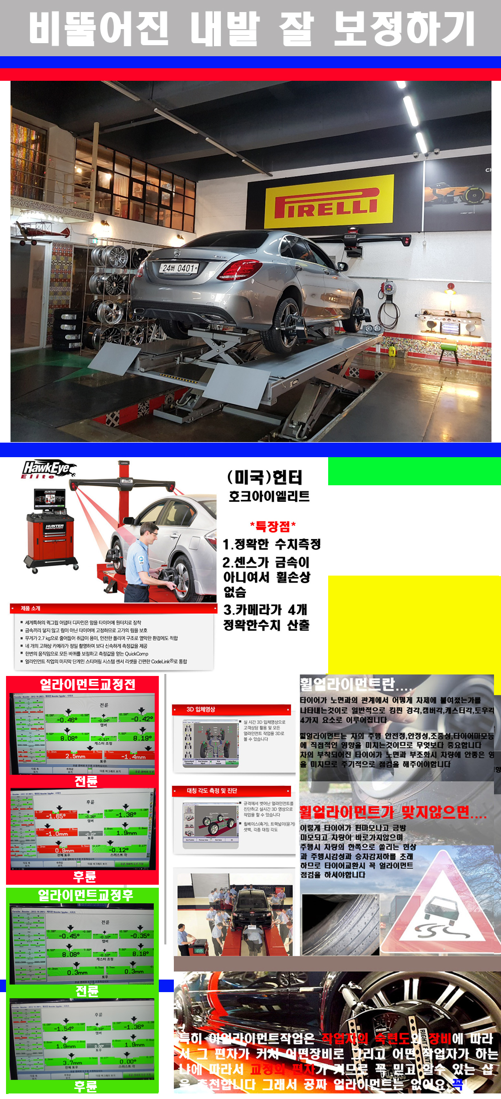 이후 미국 헌터사 호크아이엘리트 장비로 3D얼라이먼트를 진행했습니다