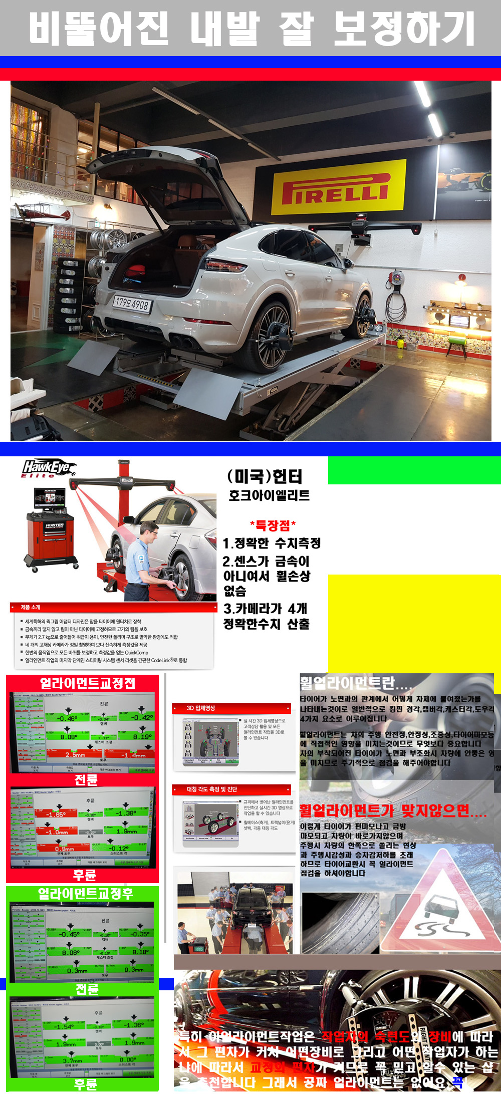 이후 미국 헌터사 호크아이엘리트 장비로 3D얼라이먼트를 진행했습니다