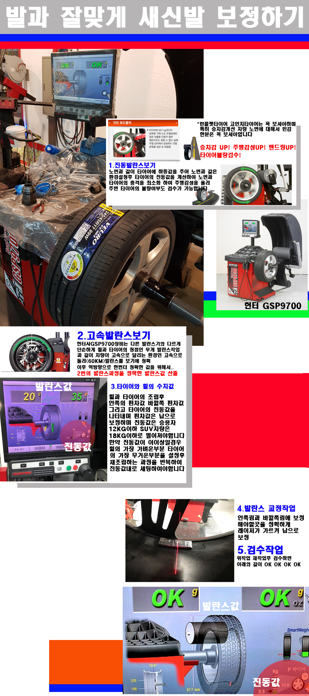이장비는 노면에서 올라오는 진동값까지 계산하여 발란스값을 보는 방식으로 진동발란스기는 헌터사GSP9700장비가 유일합니다 이후 역방향으로 60키로의 고속으로 다시 발란스값을 보정하는 방식입니다