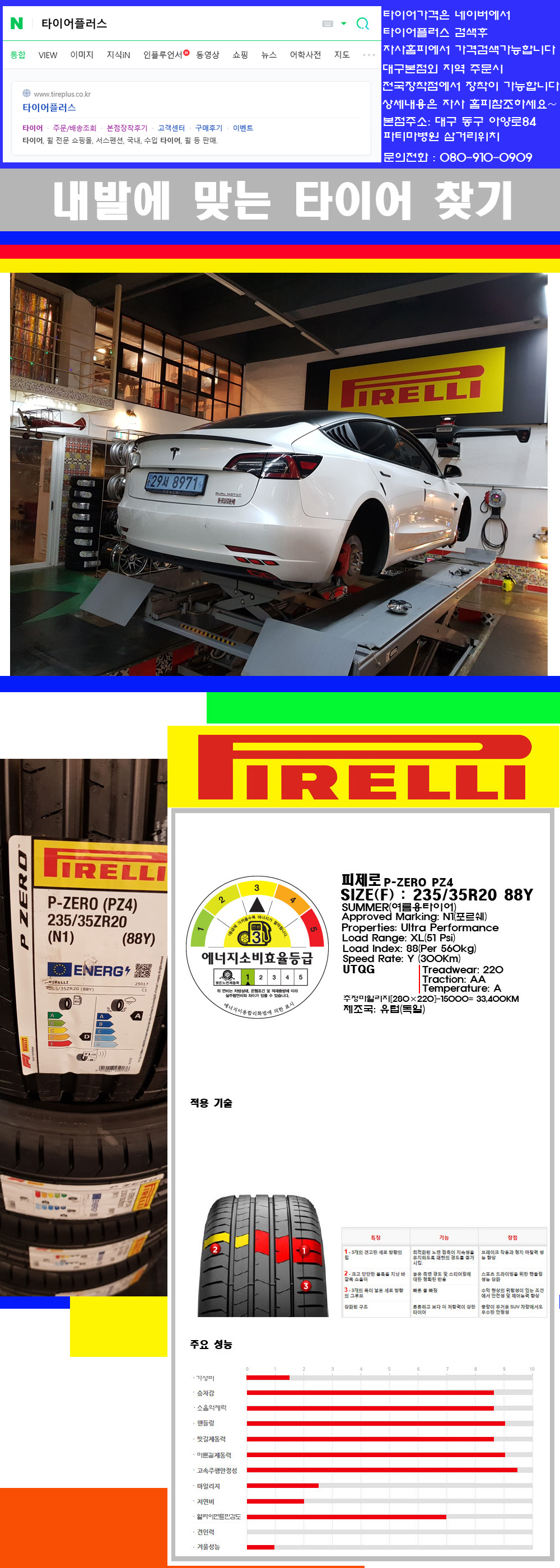 [2353520]테슬라 모델3 피렐리타이어 피제로 PZ4 235/35R20 |