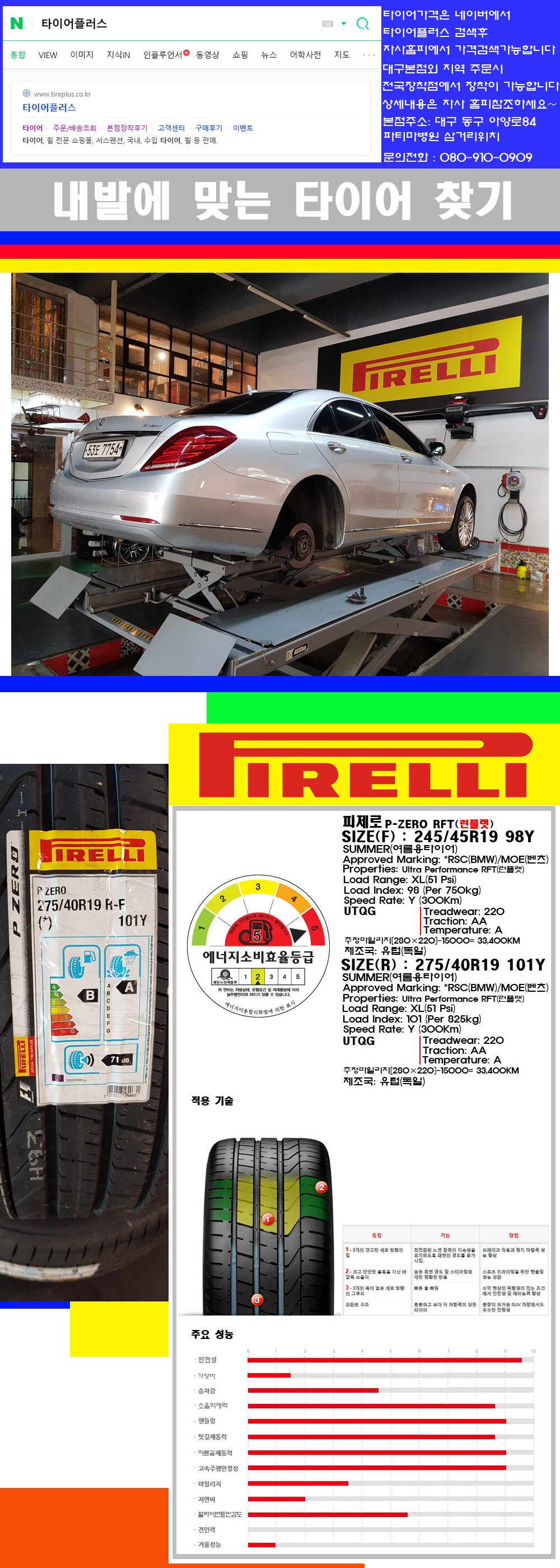 [2754019]벤츠S350D 피렐리타이어 피제로 RFT 275/40R19 |