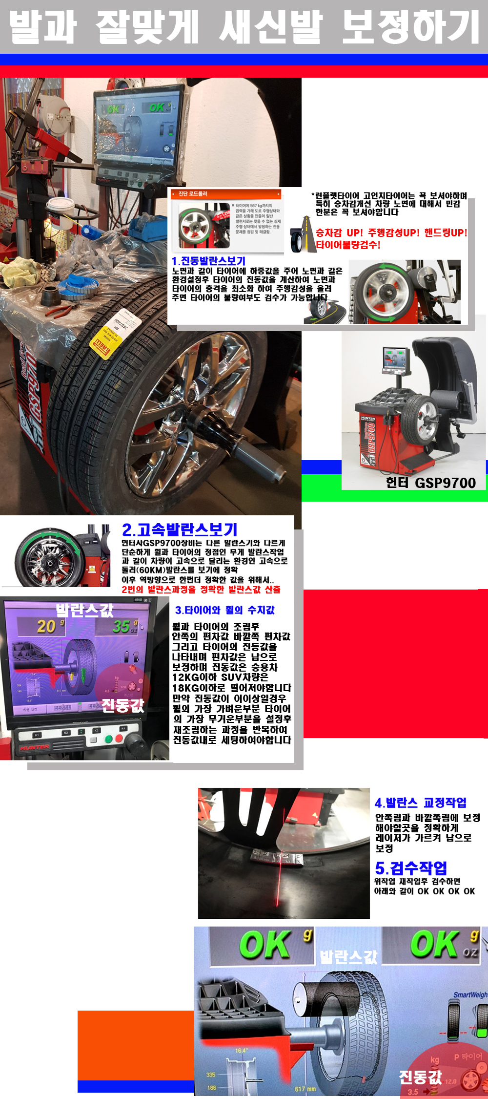 이장비는 노면에서 올라오는 진동값까지 계산하여 발란스값을 보는 방식으로 진동발란스기는 헌터사GSP9700장비가 유일합니다 이후 역방향으로 60키로의 고속으로 다시 발란스값을 보정하는 방식입니다