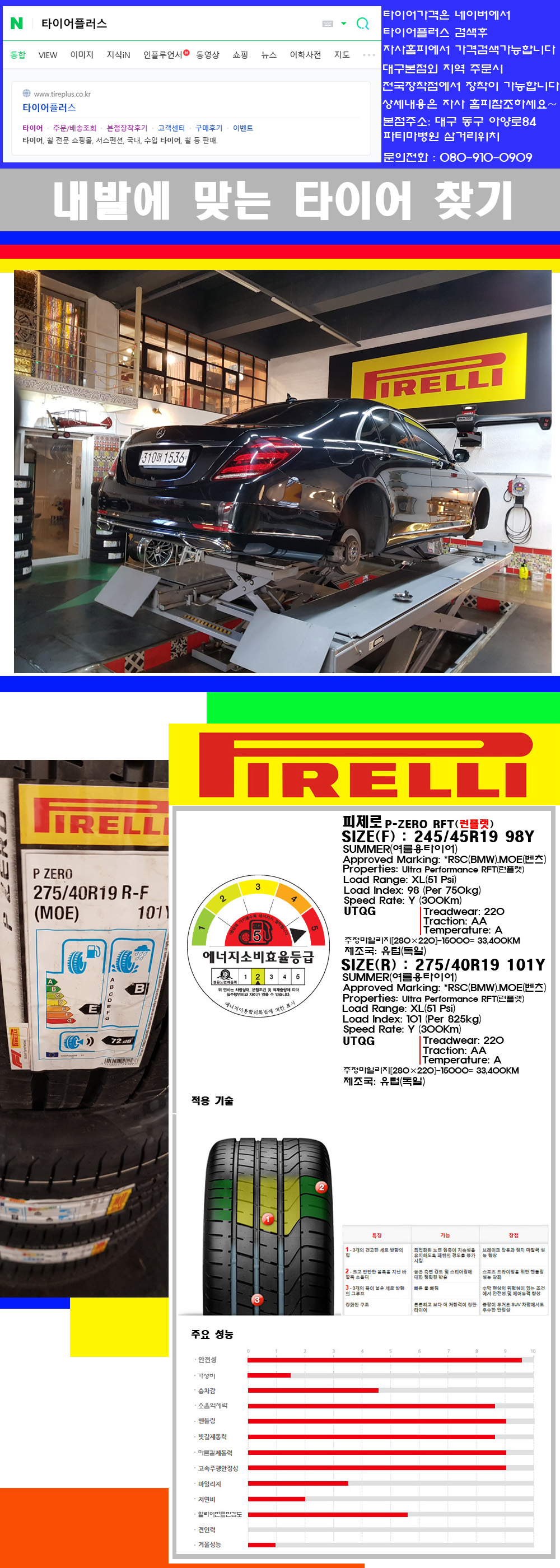 ♥♥♥본점 대구 동구 아양로84 (파티마삼거리 위치) 국산 수입타이어 할인행사중♥♥♥ 순정품타이어인 피렐리타이어 피제로 RFT(런플랫) 순정품타이어인 피렐리타이어 피제로 RFT(런플랫) (MOE/RSC ★) 전륜)245/45R19 후륜)275/40R19로 장착해드렸습니다 (MOE/RSC ★) 이기호는 자동차제조사에서 차종의 특성을 고려하여서 주는 고유기호이며 이타이어는 그차종에만 장착이 되기에 소량생산이 되는 정말 순정품타이어입니다