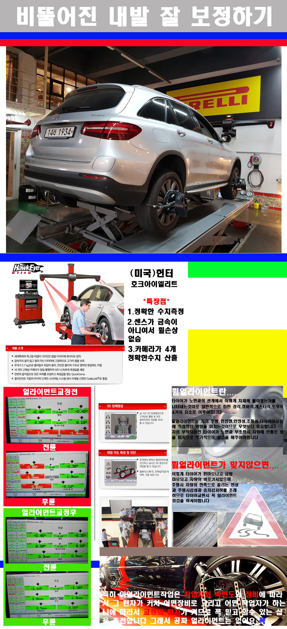 이후 미국 헌터사 호크아이엘리트 장비로 3D얼라이먼트를 진행했습니다