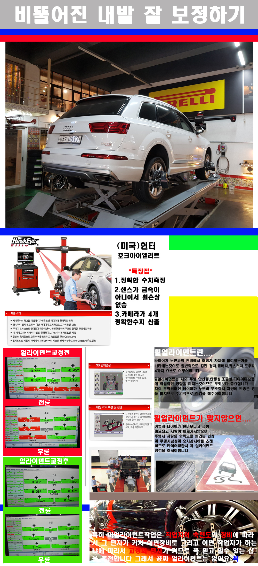 이후 미국 헌터사 호크아이엘리트 장비로 3D얼라이먼트를 진행했습니다