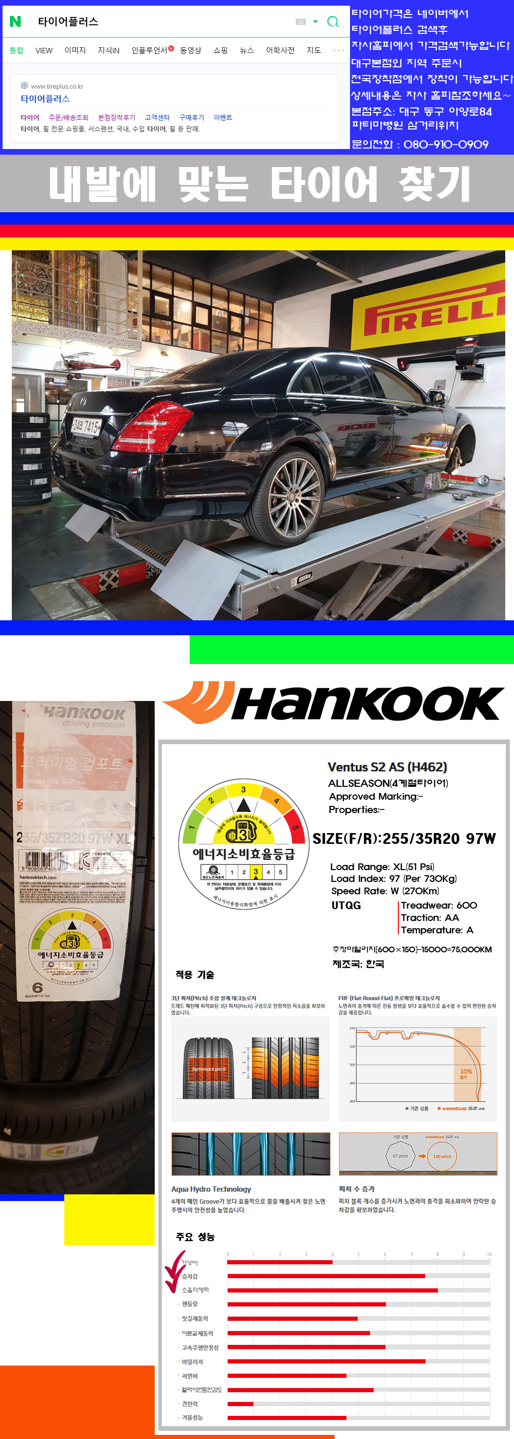 | [2553520]벤츠S600 한국타이어 벤투스 S2AS (H462) 255/35R20 | |||
