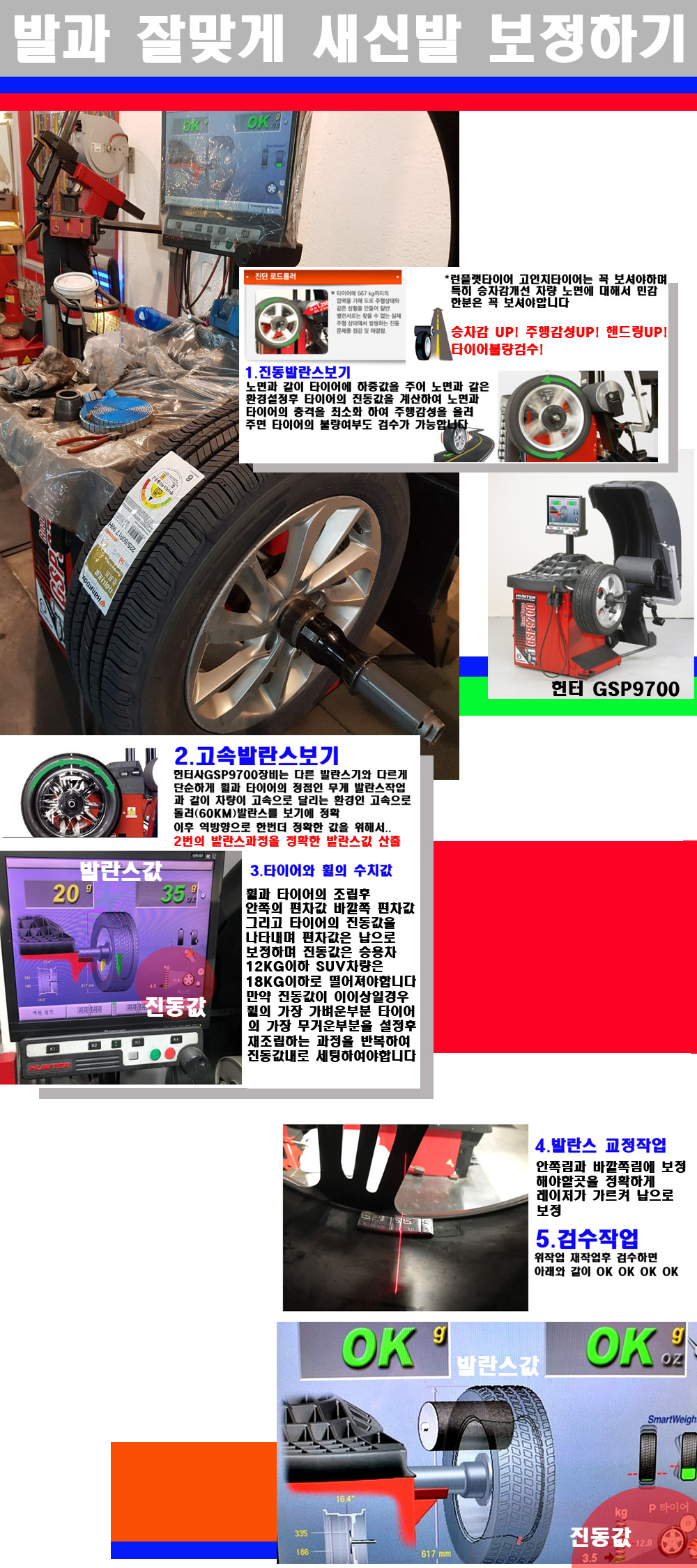 이장비는 노면에서 올라오는 진동값까지 계산하여 발란스값을 보는 방식으로 진동발란스기는 헌터사GSP9700장비가 유일합니다 이후 역방향으로 60키로의 고속으로 다시 발란스값을 보정하는 방식입니다