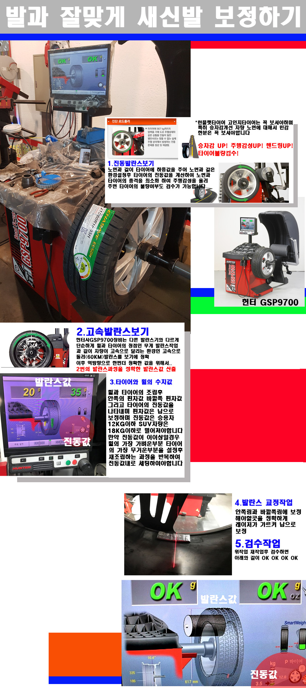 이장비는 노면에서 올라오는 진동값까지 계산하여 발란스값을 보는 방식으로 진동발란스기는 헌터사GSP9700장비가 유일합니다 이후 역방향으로 60키로의 고속으로 다시 발란스값을 보정하는 방식입니다