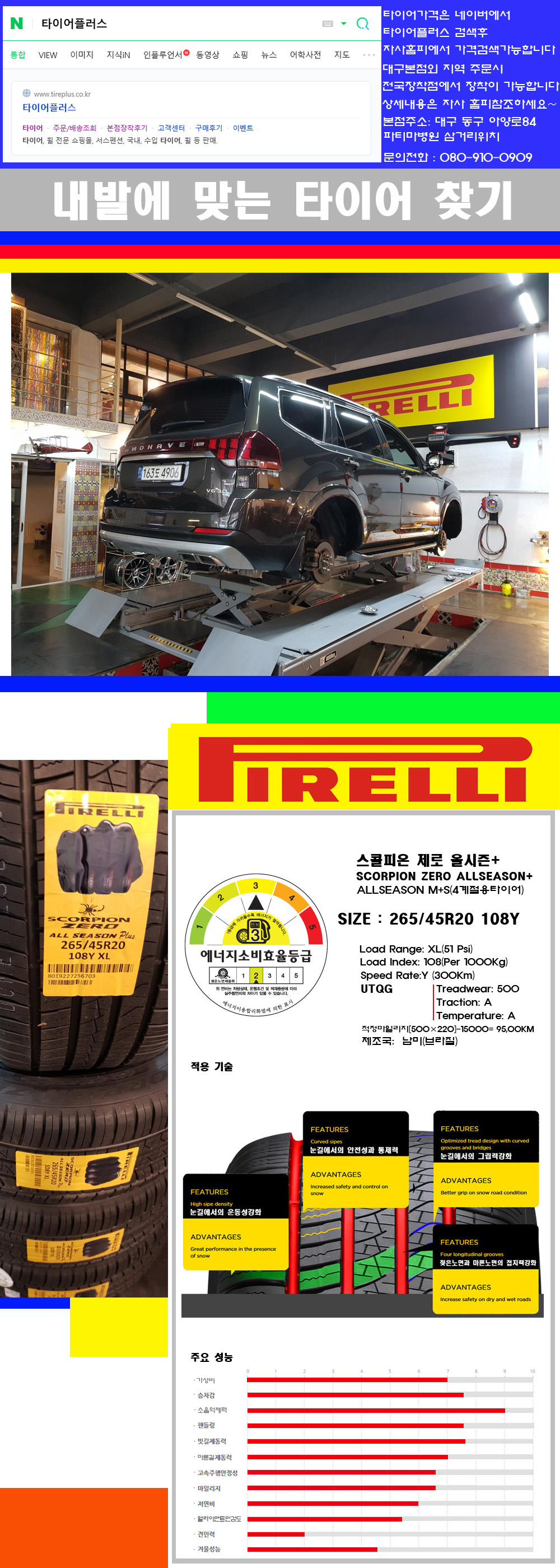 ♥♥♥본점 대구 동구 아양로84 (파티마삼거리 위치) 국산 수입타이어 할인행사중♥♥♥ 타이어플러스 대구본점은 전국에서 가장 규모가 큰매장입니다 물론 자사는 지하층 지상4층건물이며 1층작업장이외는 모두 창고로 사용중인 회사입니다 대구광역시 동구 아양로84(파티마병원 네거리에 위치) 그래서 매장으로 바로 오시면 당일에 바로 장착이 가능합니다 물론 한국 금호 넥센 브리지스톤 미쉐린 콘티넨탈 피렐리 던롭 굳이어 요코하마 등 세계유수의 10대 브랜드타이어만 취급하고 있습니다 타이어매장중 단일규모로는 아마 전국에서 제일 커지않을까 생각합니다 물론 장비도 현존하는 장비중 가장 최신장비와 그리고 유럽풍 인테리어의 최고급매장입니다 무엇하나 정품만 취급하며 작업또한 꼼꼼하게 매뉴얼에 따라서 작업을 해드립니다 특히 사장님의 이력이 화려한데 레이스로서 경험한 풍부한 자동차의 지식을 갖춘분이십니다 그래서 사장님께서 직접상담해주시고 장착도 해주시는 매장이기에 더 신뢰가 가지 않을까 생각합니다 자사는 인터넷 최저가 기반으로 성장한 회사이기에 가격또한 인터넷 최저가로 장착해 드리고 있습니다 그리고 자사는 고객만족도에서 대상까지 수상한 회사입니다 그래서 한번 저의 매장에서 작업하신 고객님은 아마 다른곳에서는 아마 눈에 차지 않을것이라 생각합니다 가격이면 가격 작업의 완성도면 완성도 그리고 사후 관리까지 최고중에 최고가 되기위해서 노력하는 매장입니다 지금까지 어느 매장에서도 느끼지 못한 감성들을 느끼시기를 바랍니다 감사합니다 요즘 SUV전용타이어 많이 시판되고 있습니다 회사별로도 무수한 패턴들이 생산이 되고있습니다 대충 타이어의 성격들을 보면 이러합니다