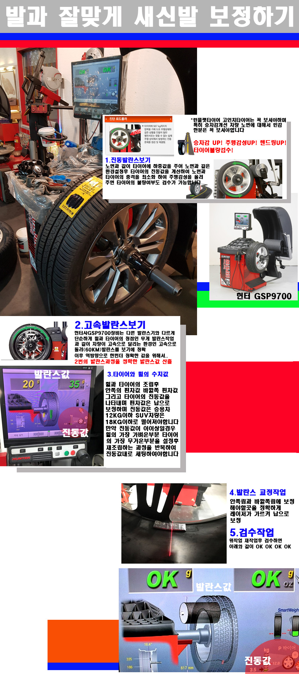 이장비는 노면에서 올라오는 진동값까지 계산하여 발란스값을 보는 방식으로 진동발란스기는 헌터사GSP9700장비가 유일합니다 이후 역방향으로 60키로의 고속으로 다시 발란스값을 보정하는 방식입니다