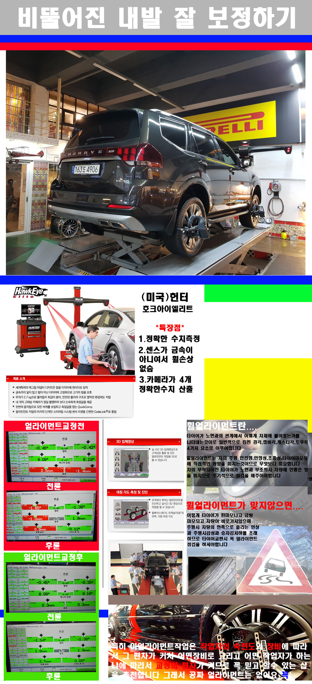 이후 미국 헌터사 호크아이엘리트 장비로 3D얼라이먼트를 진행했습니다