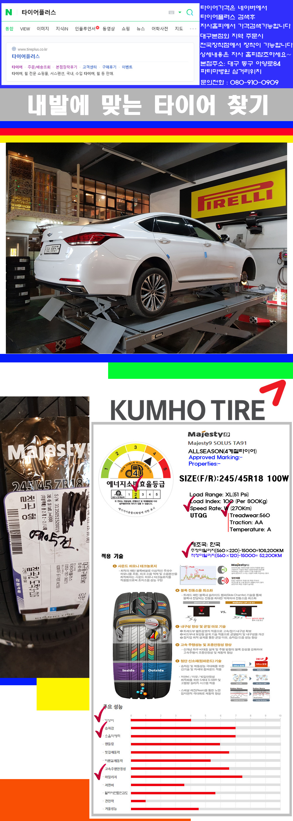 [2454518]제네시스 금호타이어 마제스티9 TA91 245/45R18 |