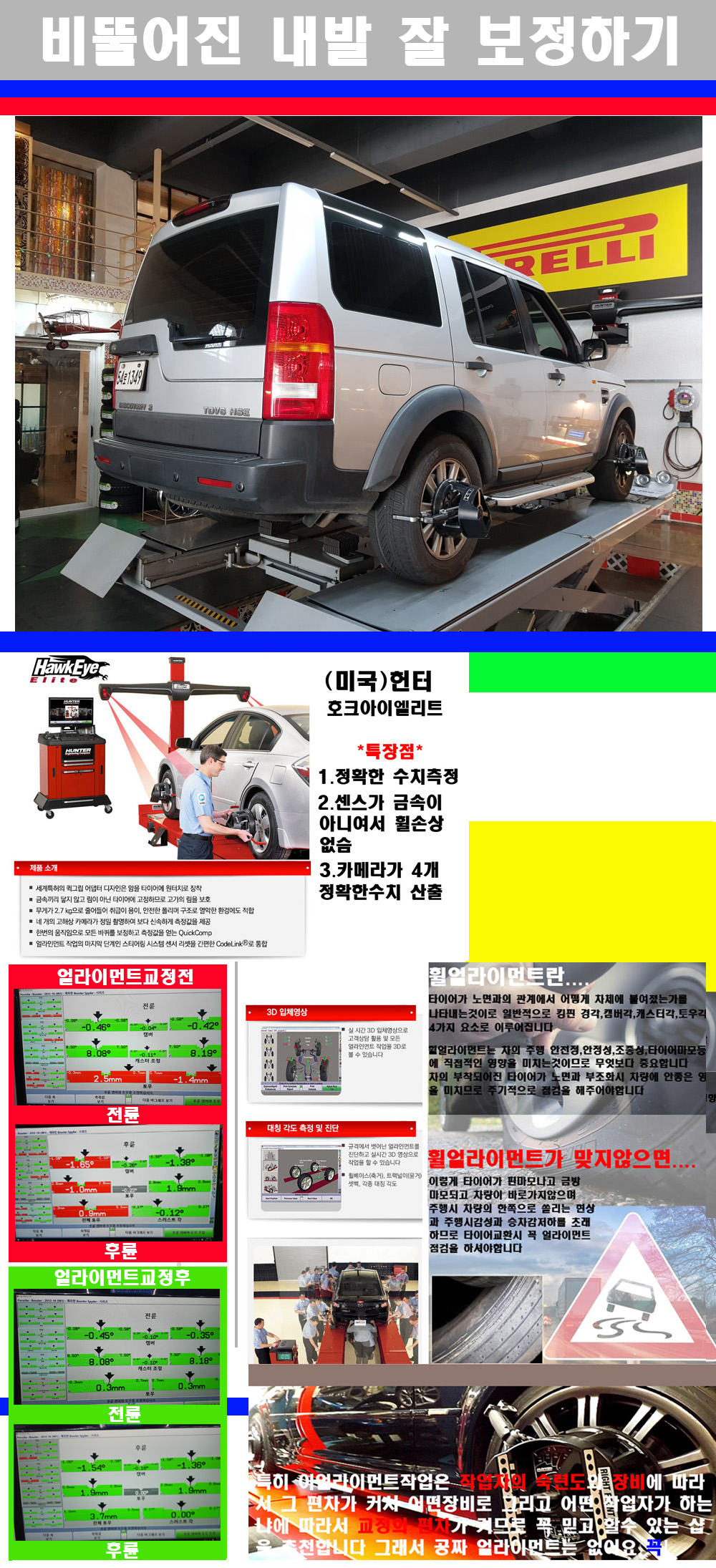 이후 미국 헌터사 호크아이엘리트 장비로 3D얼라이먼트를 진행했습니다