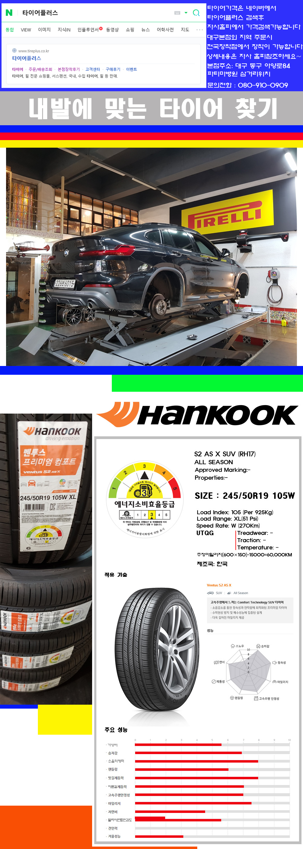 [2455019]BMW X4 한국타이어 벤추스 S2ASX (RH17) 245/50R19 |