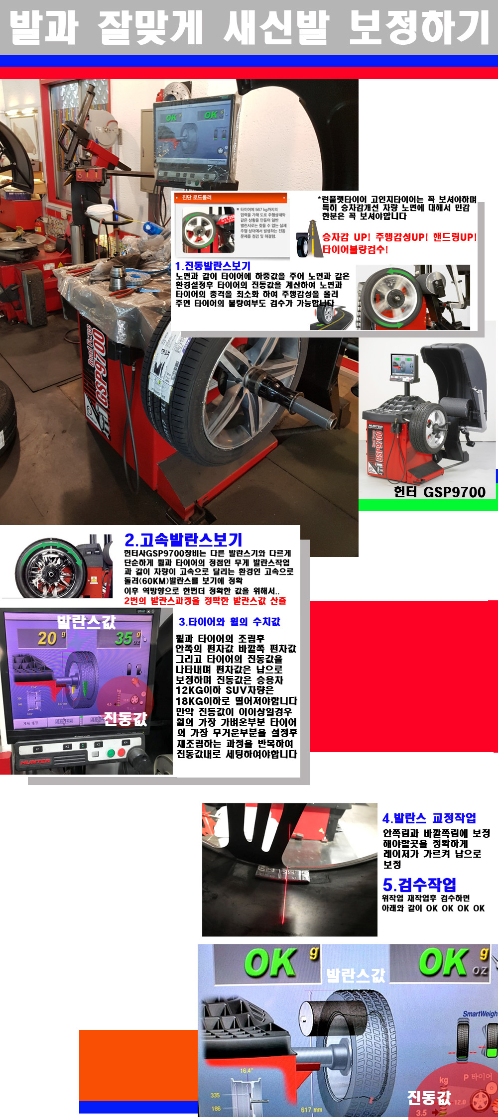 이장비는 노면에서 올라오는 진동값까지 계산하여 발란스값을 보는 방식으로 진동발란스기는 헌터사GSP9700장비가 유일합니다 이후 역방향으로 60키로의 고속으로 다시 발란스값을 보정하는 방식입니다