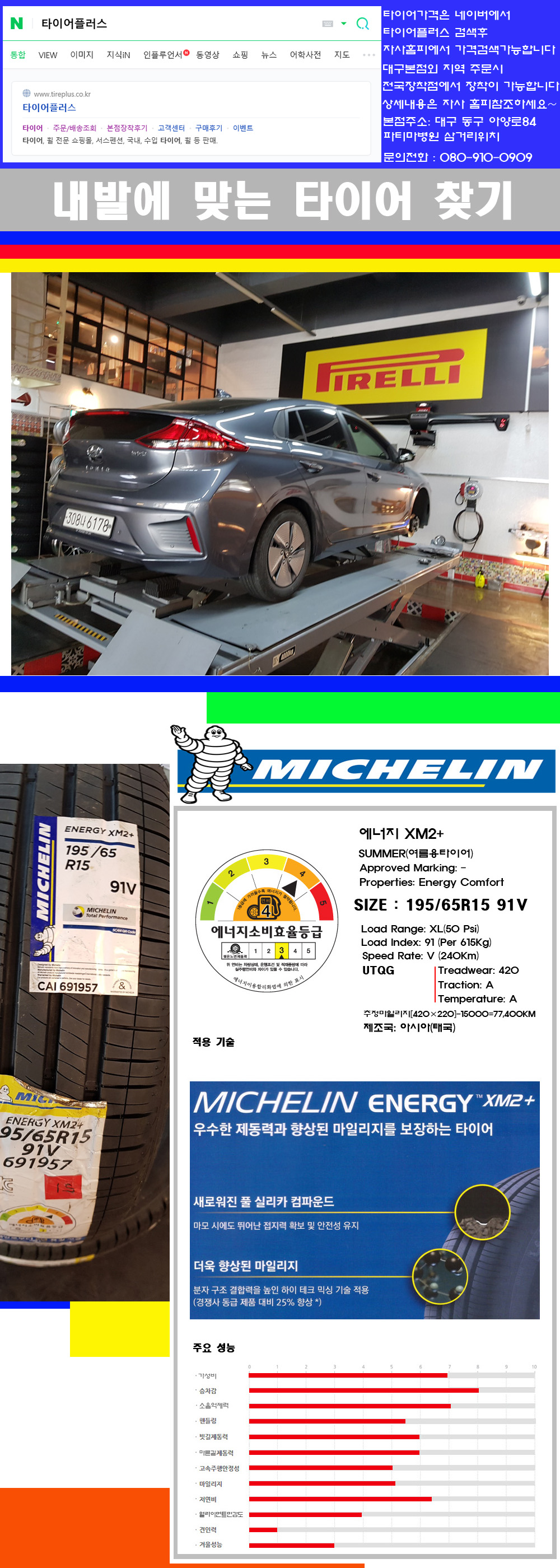 물론 한국 금호 넥센 브리지스톤 미쉐린 콘티넨탈 피렐리 던롭 굳이어 요코하마 등 세계유수의 10대 브랜드타이어만 취급하고 있습니다 타이어매장중 단일규모로는 아마 전국에서 제일 커지않을까 생각합니다 가격도 인터넷 최저가로 장착해 드리고 있습니다 고객님들이 오시면서 너무 고급스러워 가격도 비싸지 않을까 생각하시는데 네이버에서 타이어플러스사이트를 검색해보시면 가격 또한 정말 싸게 판매하고 있구나 하고 생각하실것입니다 자사홈피가격은 장착비 포함가격입니다 물론 장비도 현존하는 장비중 가장 최신장비와 그리고 유럽풍 인테리어의 최고급매장입니다 무엇하나 정품만 취급하며 작업또한 꼼꼼하게 매뉴얼에 따라서 작업을 해드립니다 특히 사장님의 이력이 화려한데 레이스로서 경험한 풍부한 자동차의 지식을 갖춘분이십니다 그래서 사장님께서 직접상담해주시고 장착도 해주시는 매장이기에 더 신뢰가 가지 않을까 생각합니다 자사는 인터넷 최저가 기반으로 성장한 회사이기에 가격또한 인터넷 최저가로 장착해 드리고 있습니다 그리고 자사는 고객만족도에서 대상까지 수상한 회사입니다 그래서 한번 저의 매장에서 작업하신 고객님은 아마 다른곳에서는 아마 눈에 차지 않을것이라 생각합니다 가격이면 가격 작업의 완성도면 완성도 그리고 사후 관리까지 최고중에 최고가 되기위해서 노력하는 매장입니다 지금까지 어느 매장에서도 느끼지 못한 감성들을 느끼시기를 바랍니다 감사합니다 미쉐린타이어 타이어 패턴이름에 대해서는 설명하자면 아래와 같습니다 앞에 프라이머시라고 되어 있는 패턴명은 주행성능보다는 안락함을 우선적으로 주안점을 두고 제조된 타이어임을 의미합니다 친환경타이어는 에너지라는 이름이 붙고 성능위주의 타이어는 파일롯이라는 말이 붙습니다 그래서 고객님이 미쉐린타이어를 선택시 미쉐린타이어 에너지 뭐뭐 미쉐린타이어 프라이머시 뭐뭐 미쉐린타이어 파일롯 뭐뭐 이렇게 되면 아!! 이타이어의 성격이 이런것 이구나 하구 생각하시면됩니다 그리고 ZP요글자가 붙으면 런플랫타이어 이구나 하구 생각하시구요 그리고 AC요 글자가 붙으면 안쪽에 스폰지가 내장된 타이어이구나 하구 생각하시면됩니다 그럼 한번 볼까요 미쉐린타이어 파일롯 스포츠3 ZP AC 감이 오시죠!!! 성능위주의 런플랫타이어이면서 스폰지가 내장된 타이어임을 나타냅니다!! 참고로 미쉐린타이어의 4계절용타이어는 에너지 세이버 A/S(ALL SEASON) MXM4 크로스크라이밋플러스 LTX 요렇게 공급되고 있습니다 고객님 찾아주셔서 감사합니다
