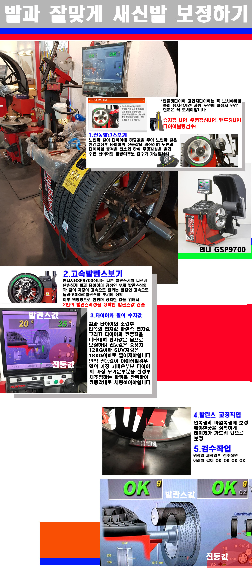 이장비는 노면에서 올라오는 진동값까지 계산하여 발란스값을 보는 방식으로 진동발란스기는 헌터사GSP9700장비가 유일합니다 이후 역방향으로 60키로의 고속으로 다시 발란스값을 보정하는 방식입니다
