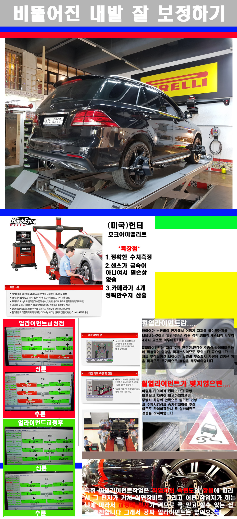 이후 미국 헌터사 호크아이엘리트 장비로 3D얼라이먼트를 진행했습니다