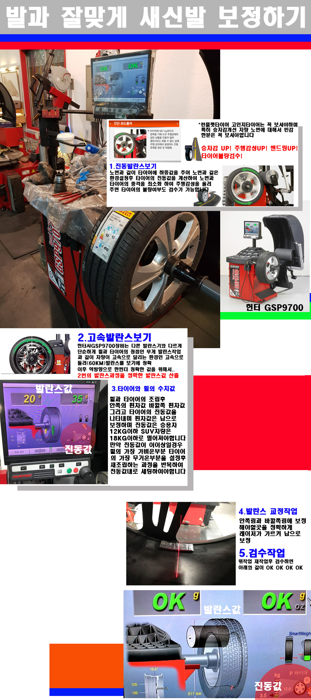이장비는 노면에서 올라오는 진동값까지 계산하여 발란스값을 보는 방식으로 진동발란스기는 헌터사GSP9700장비가 유일합니다 이후 역방향으로 60키로의 고속으로 다시 발란스값을 보정하는 방식입니다