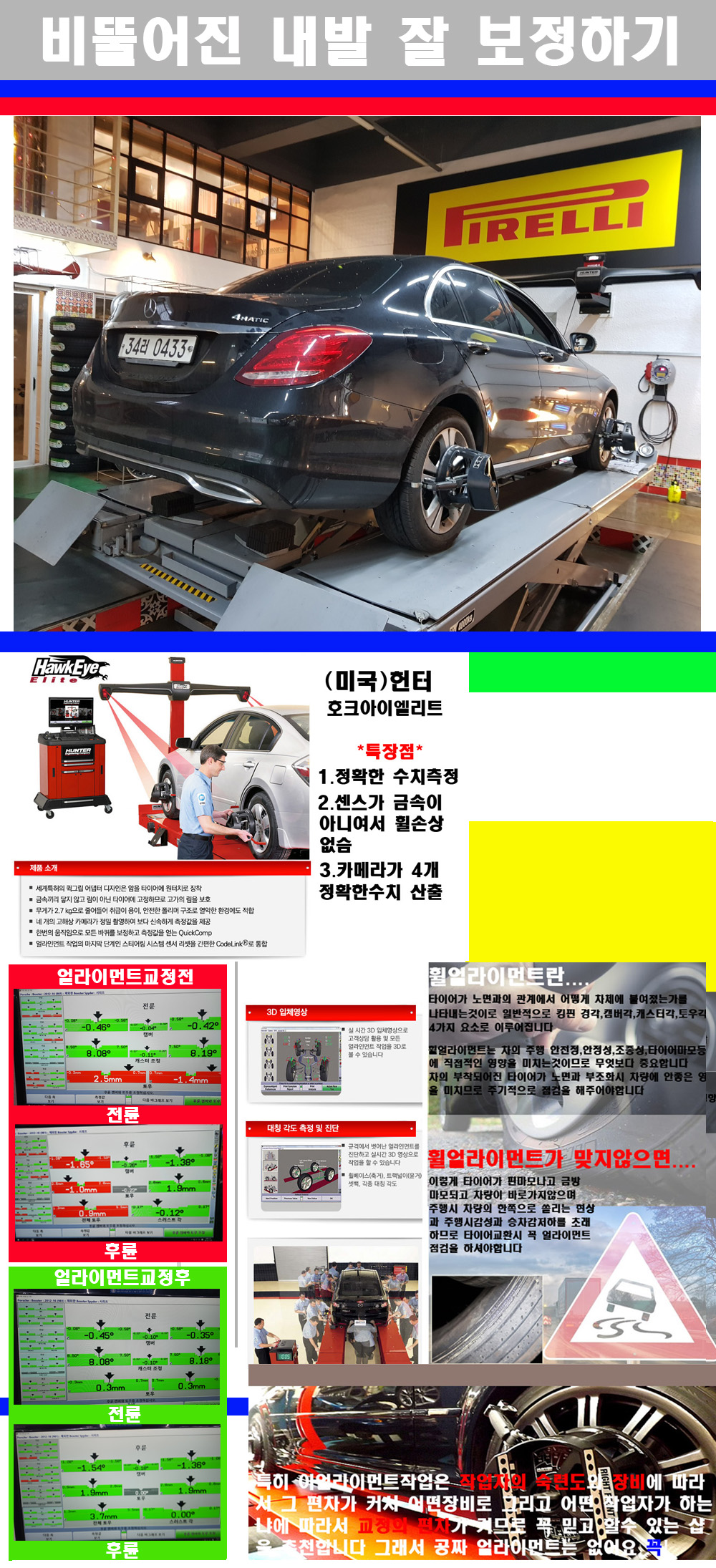 이후 미국 헌터사 호크아이엘리트 장비로 3D얼라이먼트를 진행했습니다