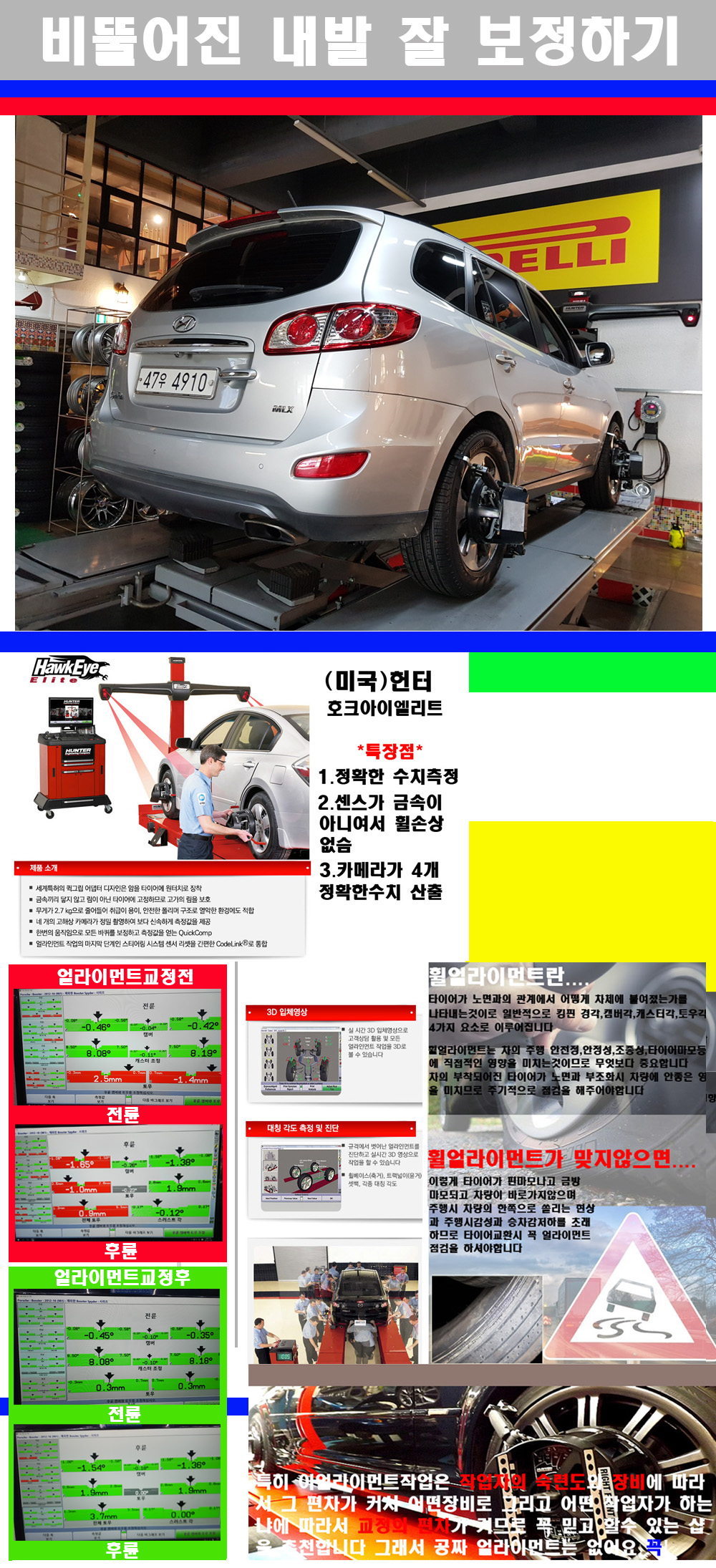 이후 미국 헌터사 호크아이엘리트 장비로 3D얼라이먼트를 진행했습니다