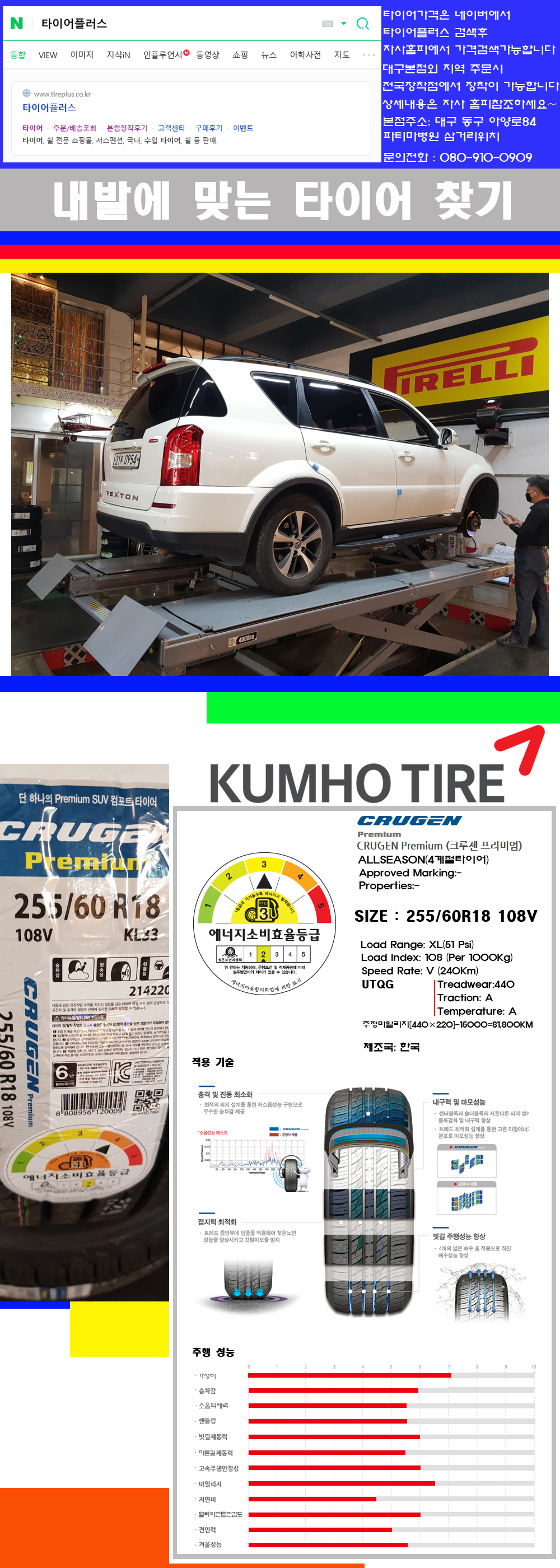 | [2555018]렉스턴 금호타이어 크루젠 프리미엄 (KL33) 255/60R18 | |||