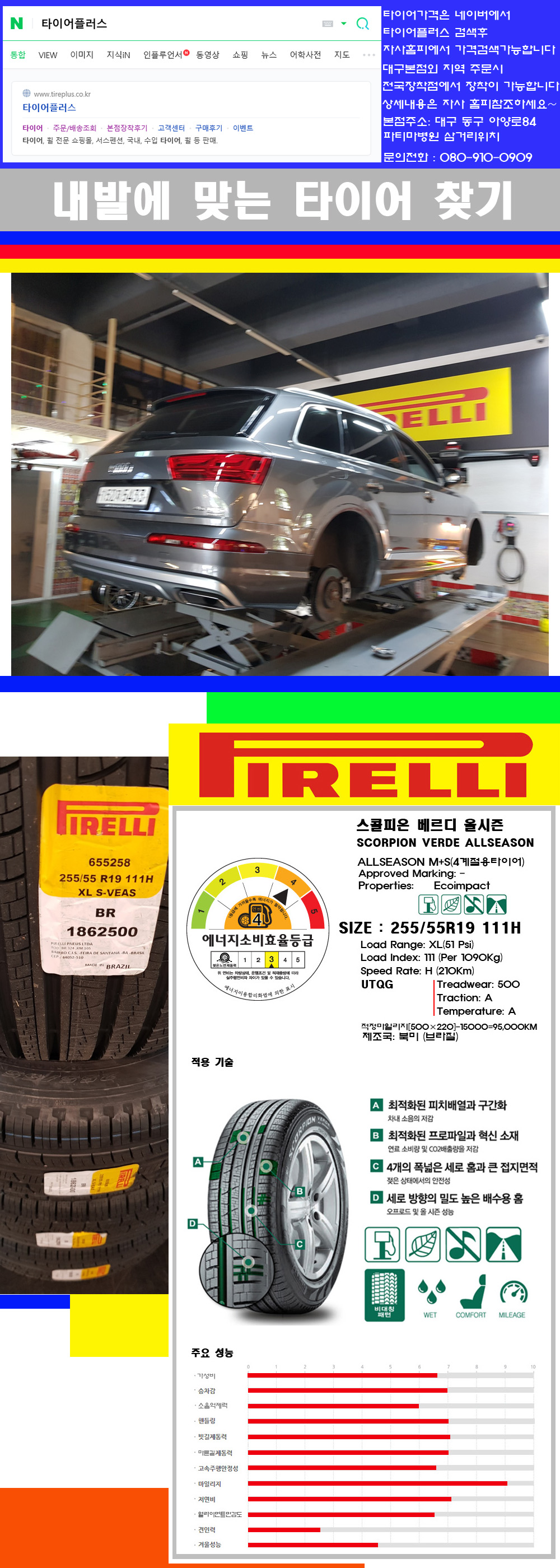 [2555519]아우디Q7 피렐리타이어 스콜피온 베르디올시즌 255/55R19 |