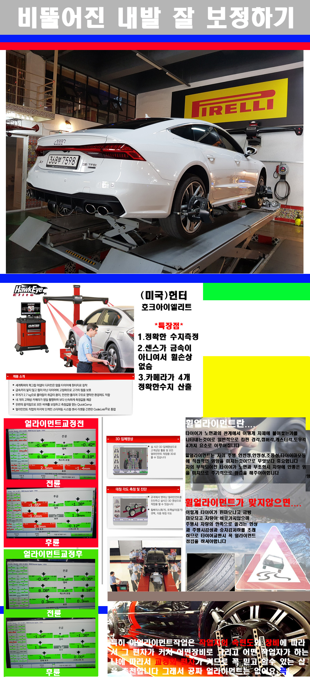 이후 미국 헌터사 호크아이엘리트 장비로 3D얼라이먼트를 진행했습니다