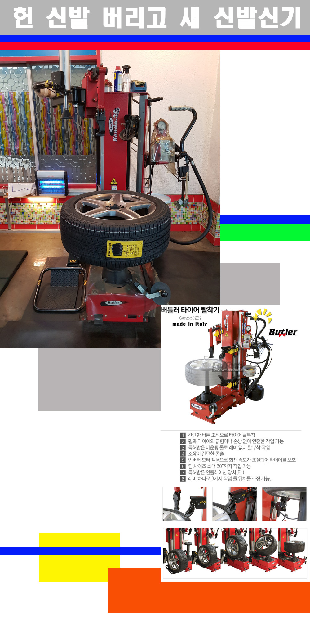 이태리 버틀러사의 켄도3.0S는 휠과 타이어와 조립과 분리시 전혀 제품에 손상을 주지않는 탈착기로 특히 센터락방식(중앙에서 휠를 고정하는 방식)이여서 휠의 중앙부위 잡아서 타이어를 탈부착하고 이후 상하롤러로 타이어를 탈부착합니다 특히 유니포미티작업(휠의 가장가벼운부분과 타이어의 가장 무거운부분을 매칭시키는 작업)시 작업자가 타이어를 정확한 지점에 휠과 매칭시킬수 있는 장점도 있습니다