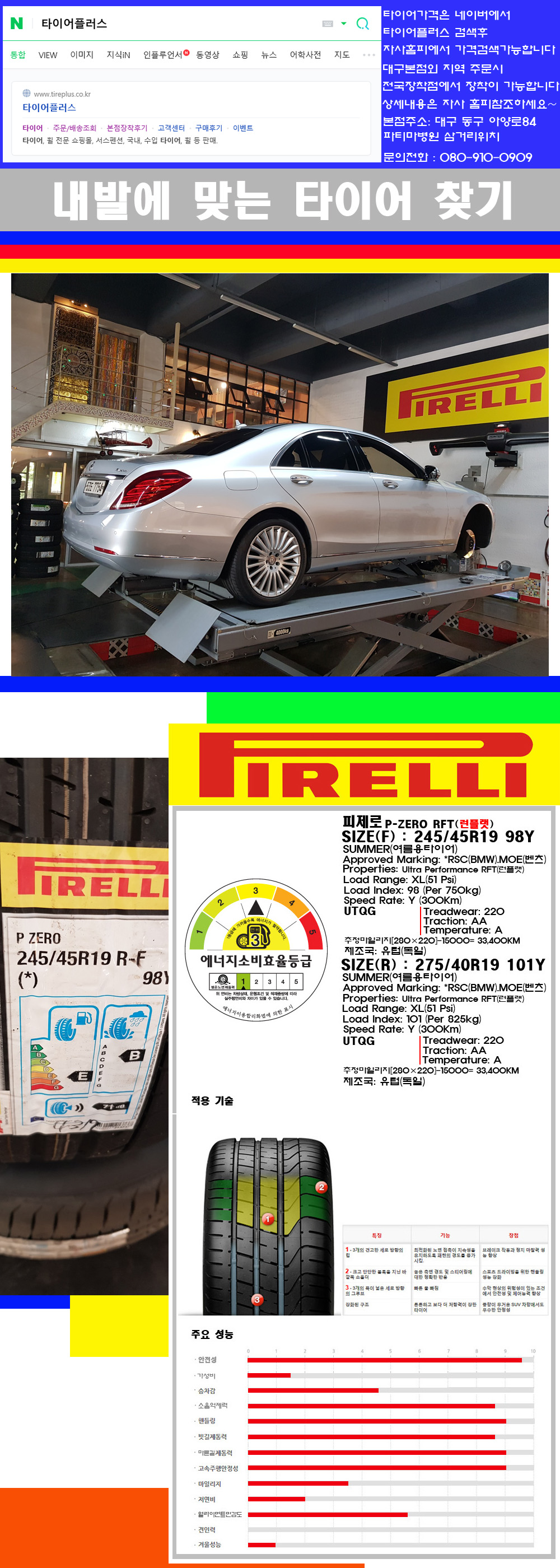 [2454519][2754019]벤츠s350 피렐리타이어 피제로 RFT 245/45R19 275/40R19 |